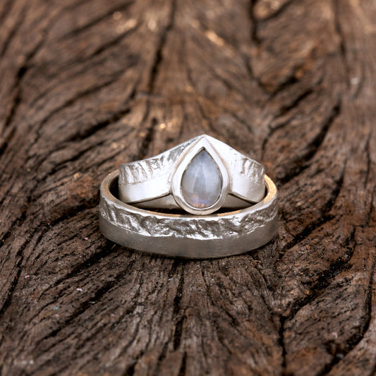 Eheringe Silber Mondstein Wishbone Trauringe Set Elfenhaft Regenbogen Mondstein Tropfen 925 Sterling Silber Ringe Maritim Nordisch Edelstein Schmuck