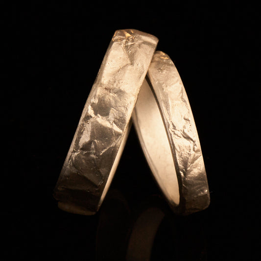 Eheringe Set Gefüge Silberringe mit unregelmäßigem Muster matt besondere Partnerringe organisch mit Charakter Trauringe mit Steinmuster Handgemacht in Deutschland