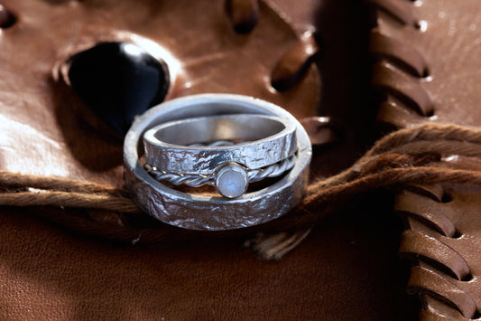 retikulierte Trauringe mit Mondstein 925 Silber