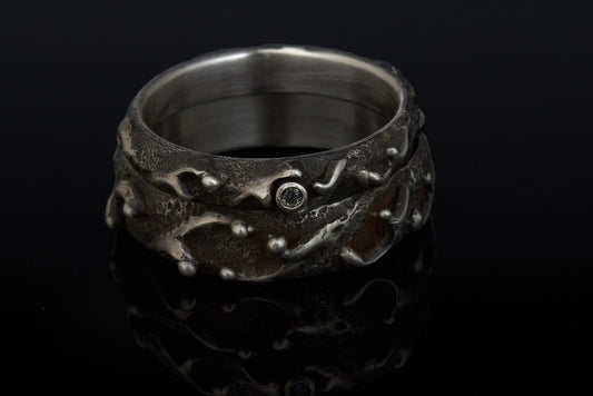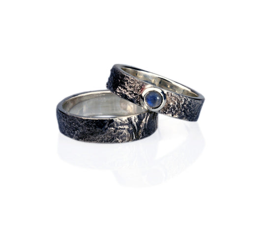 Gehämmerte Trauringe Geschwärzt | 925 Silber Trauringe | Schwarzer Diamant | Handgefertigte Eheringe | Strukturierte Trauringe | Einzigartige Trauringe | Statement Eheringe | Besondere Trauringe | Moderne Trauringe | Außergewöhnliche Eheringe