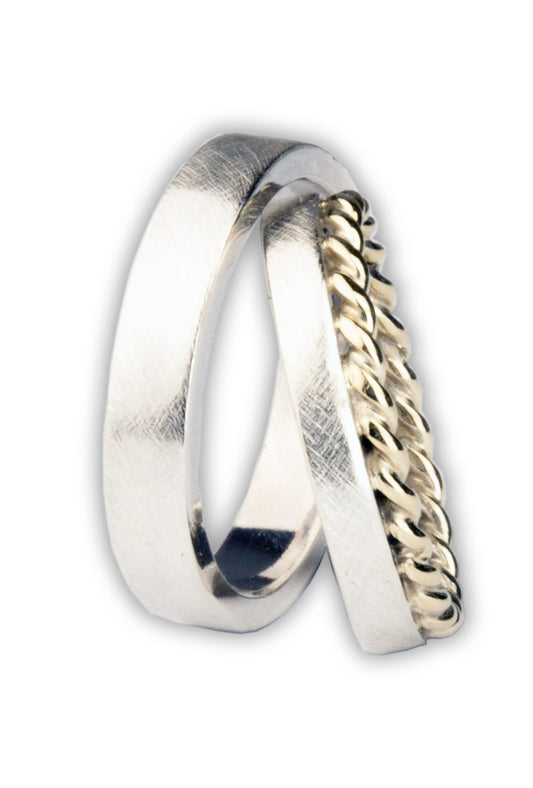 BiColor Trauringe Kordelringe Eheringe Gold und Silber kreuzmatt