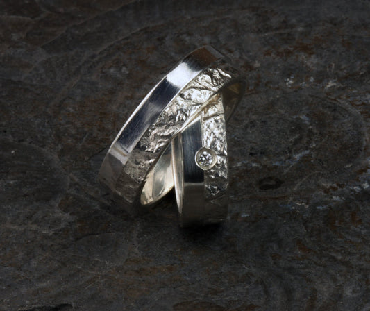 Trauringe gehämmert mit rauen Kanten aus 925 Silber