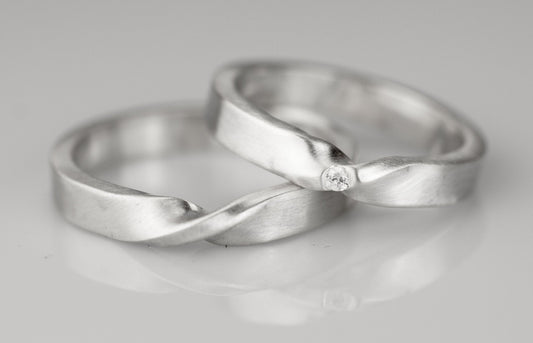 Wishbone Trauringe in retikuliertem 925 Silber matt