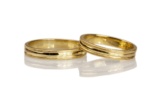 Trauringe Klassisch in 585 Gelbgold mit doppel Milgrain Rand Eheringe Paar