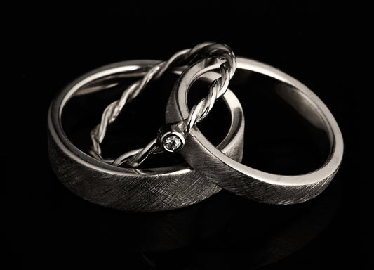 Trauringe markant mit Kordelring und Brillant geschwärzt oder matt aus 925 Silber