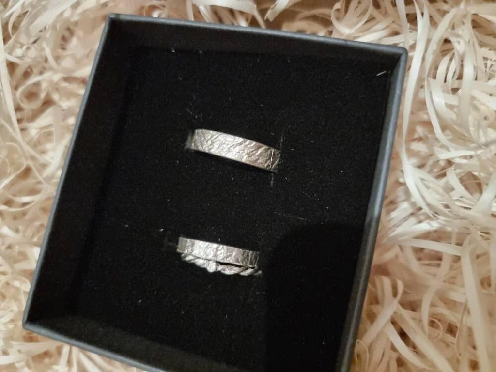 Die Ringe sind genau so geworden wie wir sie uns vorgestellt haben. Passen sehr gut zu uns, aber da unsere Hochzeit erst in Kürze stattfinden wird, sind die Ringe aktuell noch gut verstaut :)
