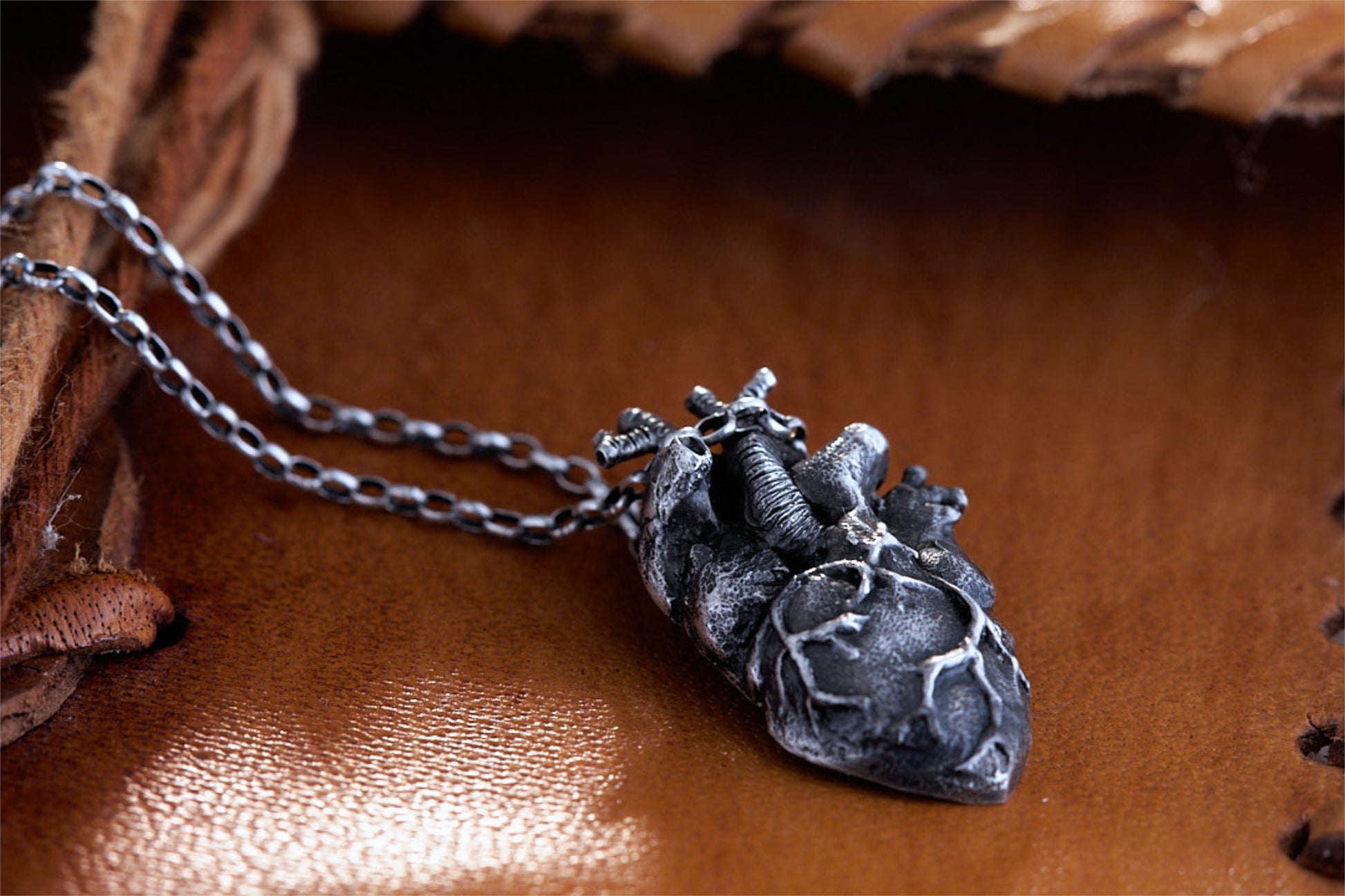 Anatomisches Herz Anhänger 925 Silber | Handgefertigt | Gothic Schmuck | Medizin Anatomie