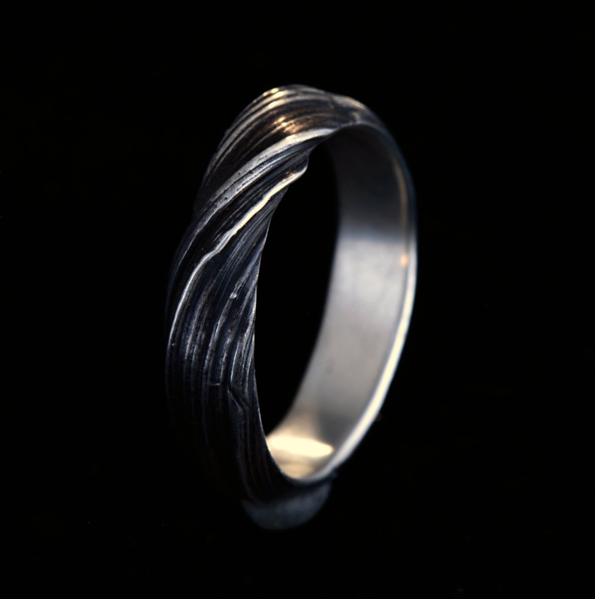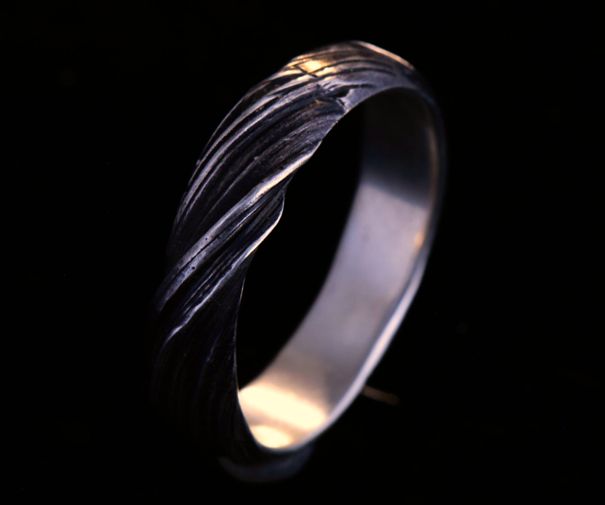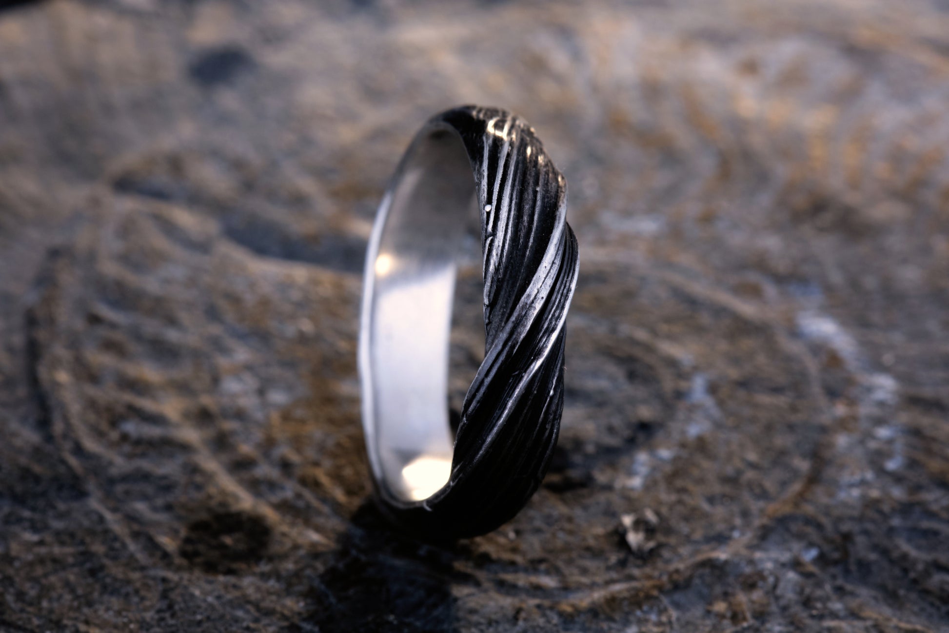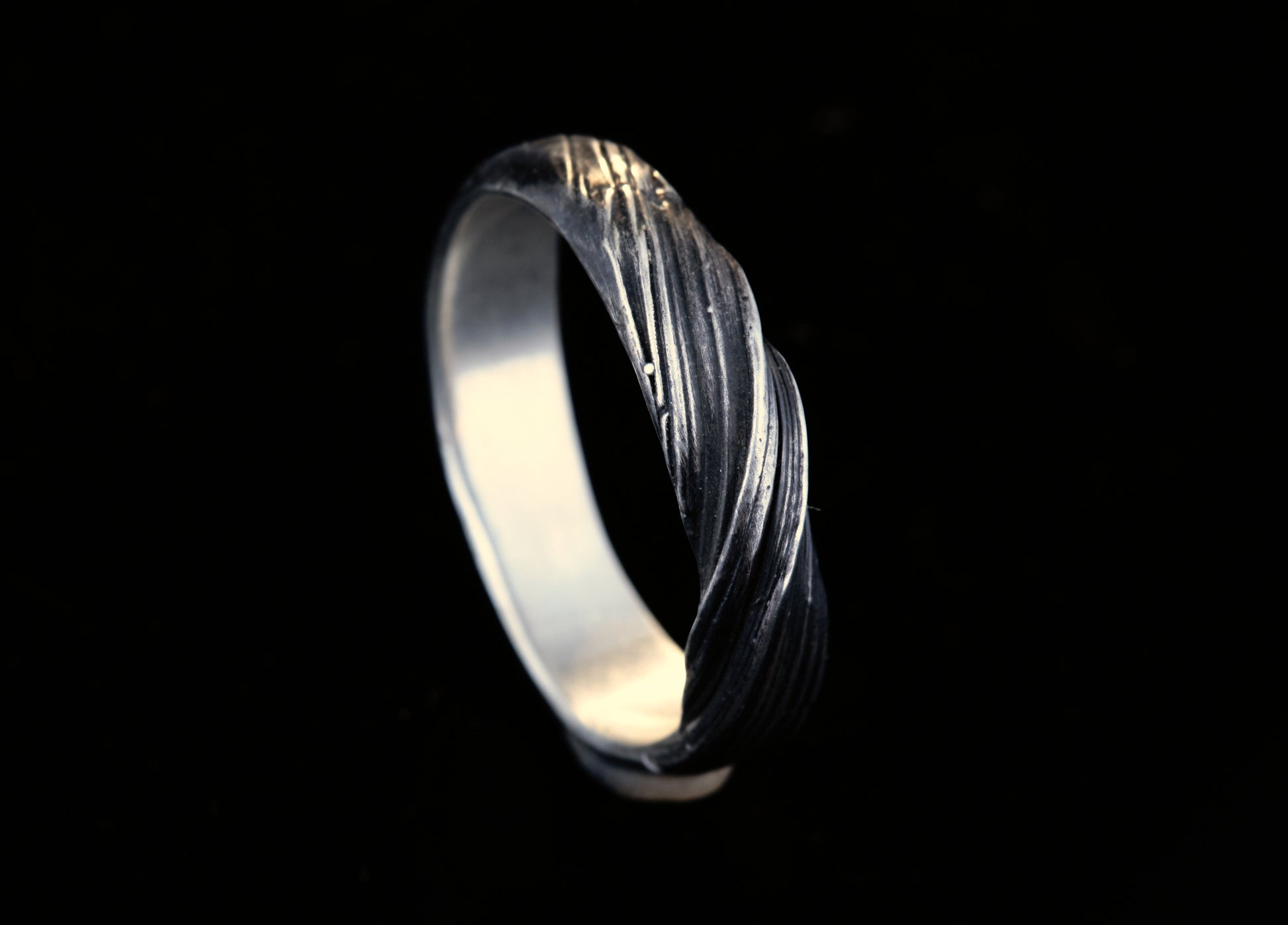 Kaugummi Ring No.4 | Handgefertigter Silberring | Mitsuro Hikime Wachstechnik | Holzmaserung Optik | Japanische Tradition | Schmuckring | Goldschmiede Deutschland