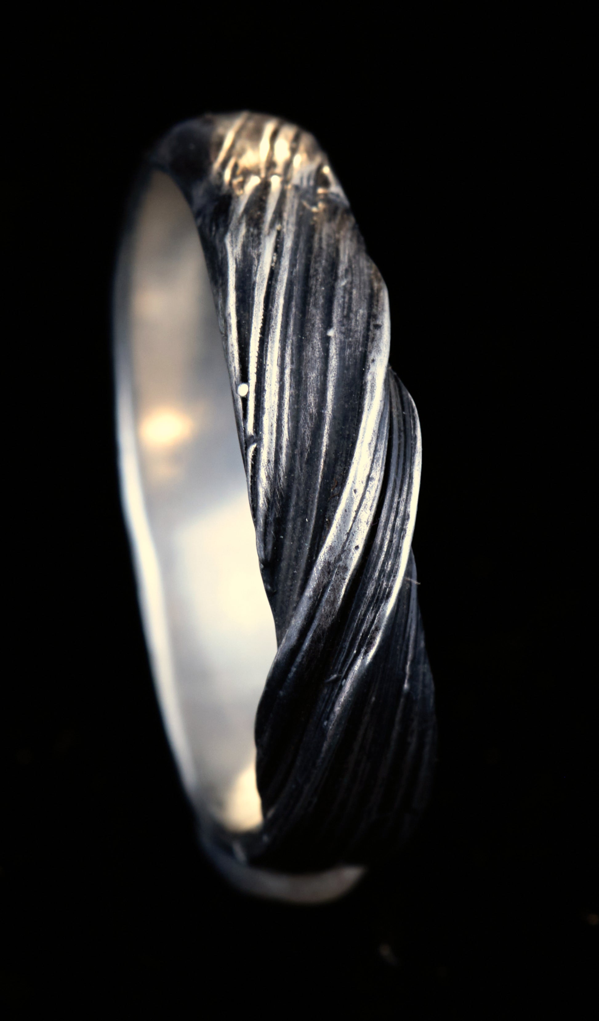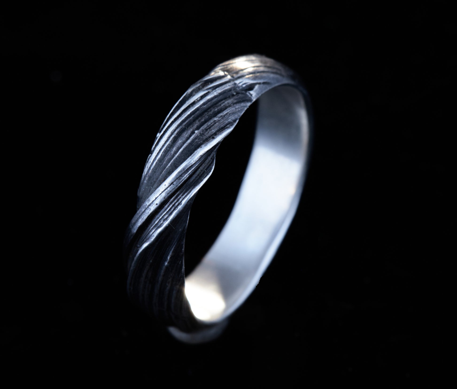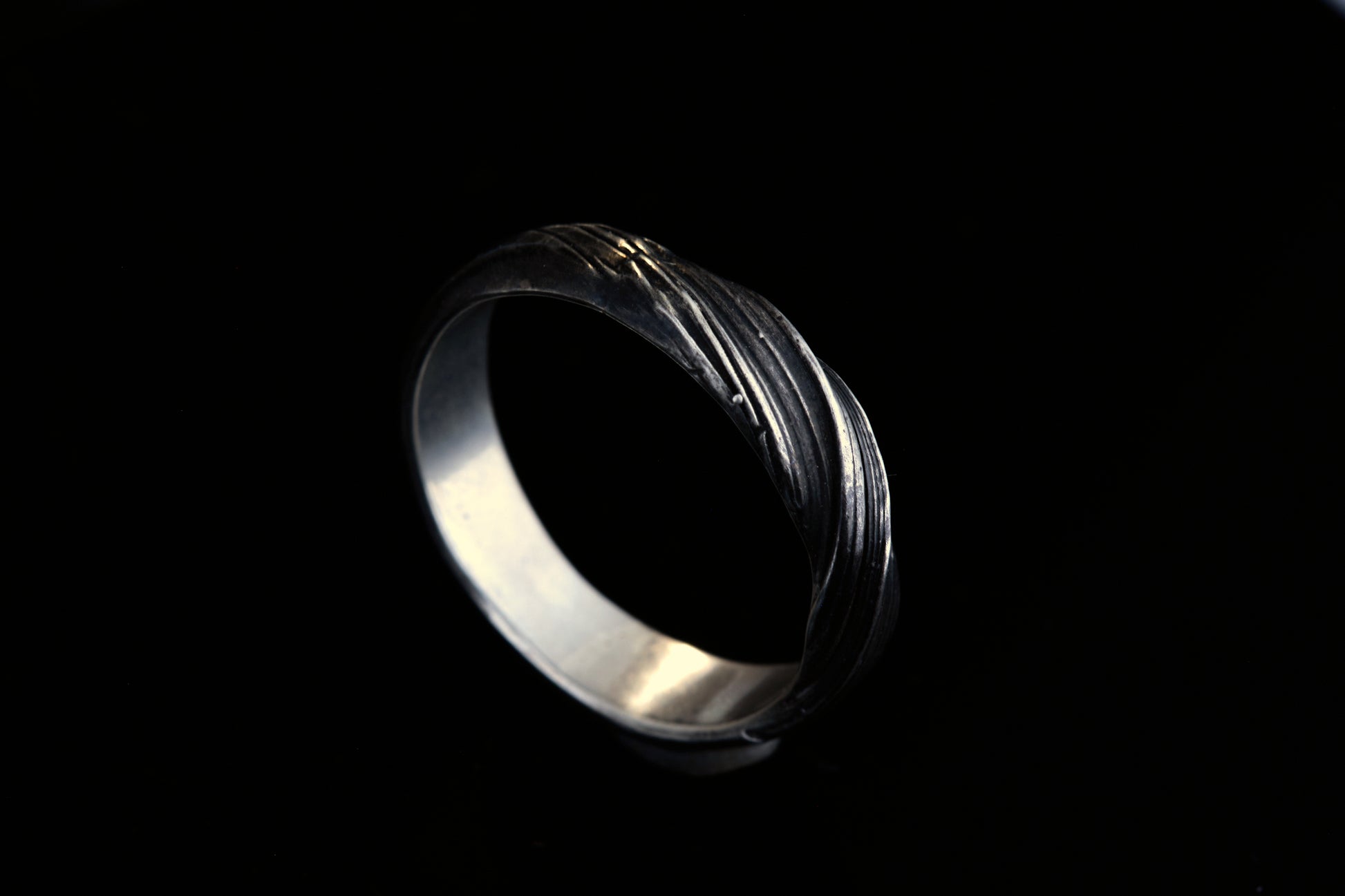 Kaugummi Ring No.4 | Handgefertigter Silberring | Mitsuro Hikime Wachstechnik | Holzmaserung Optik | Japanische Tradition | Schmuckring | Goldschmiede Deutschland