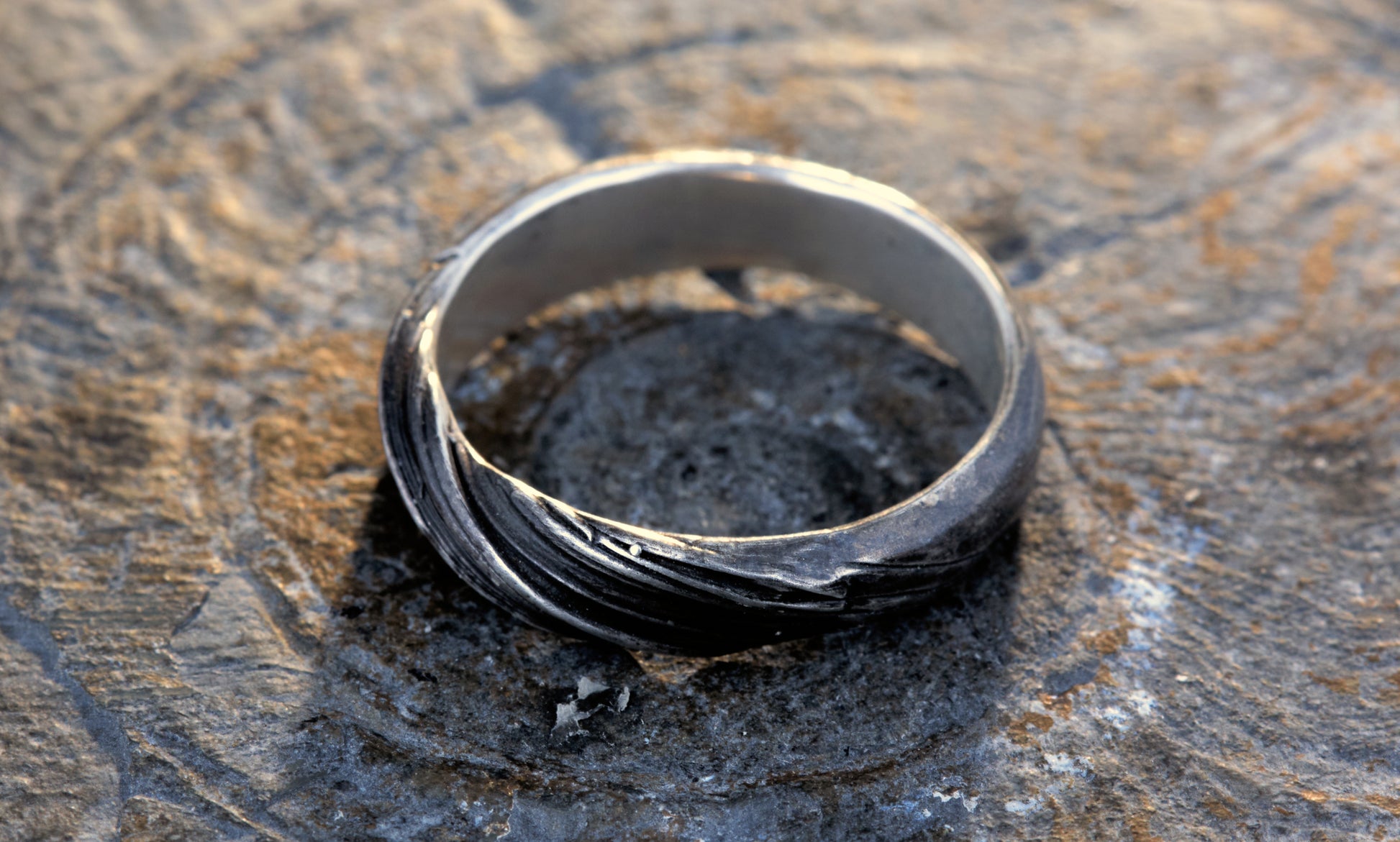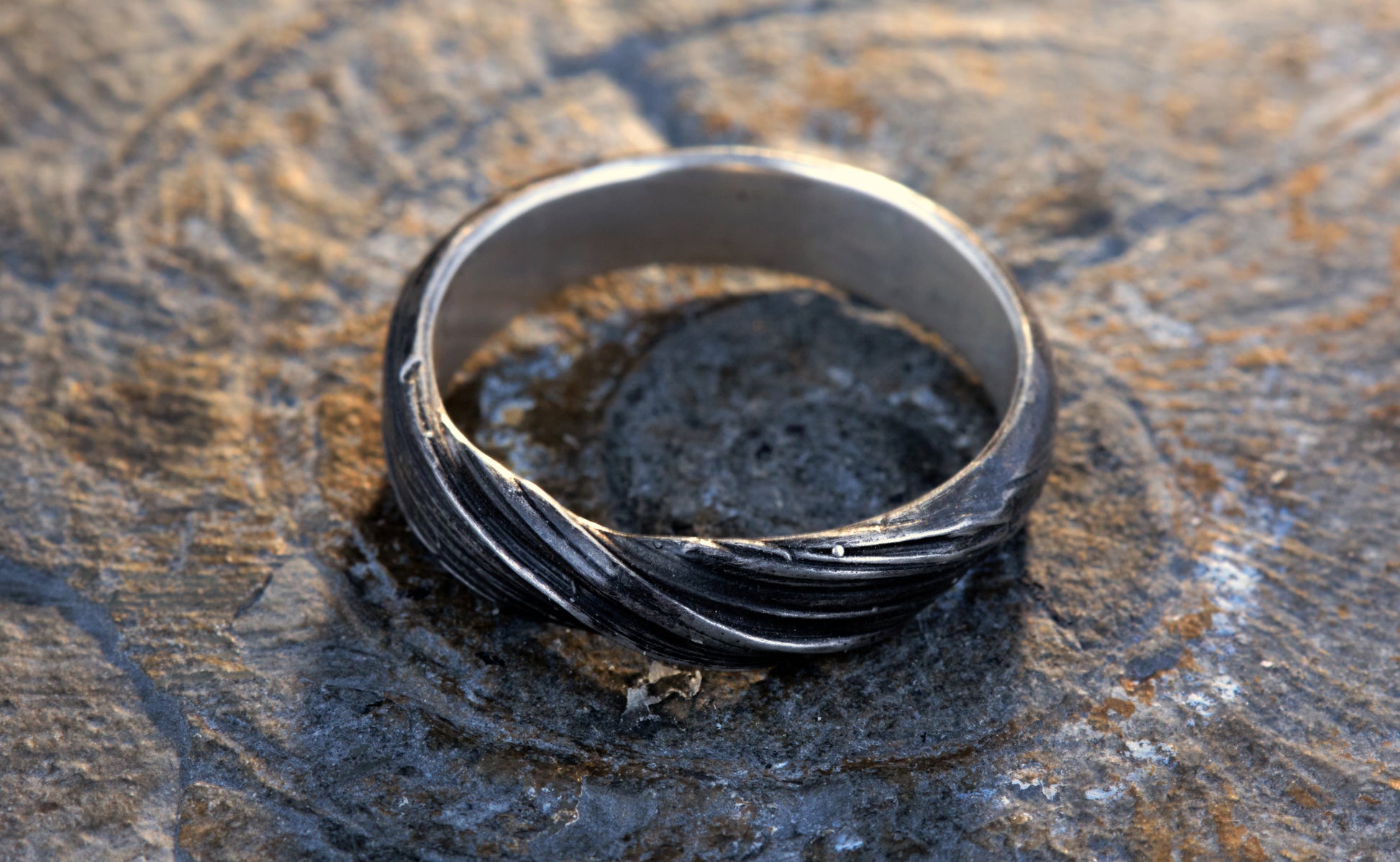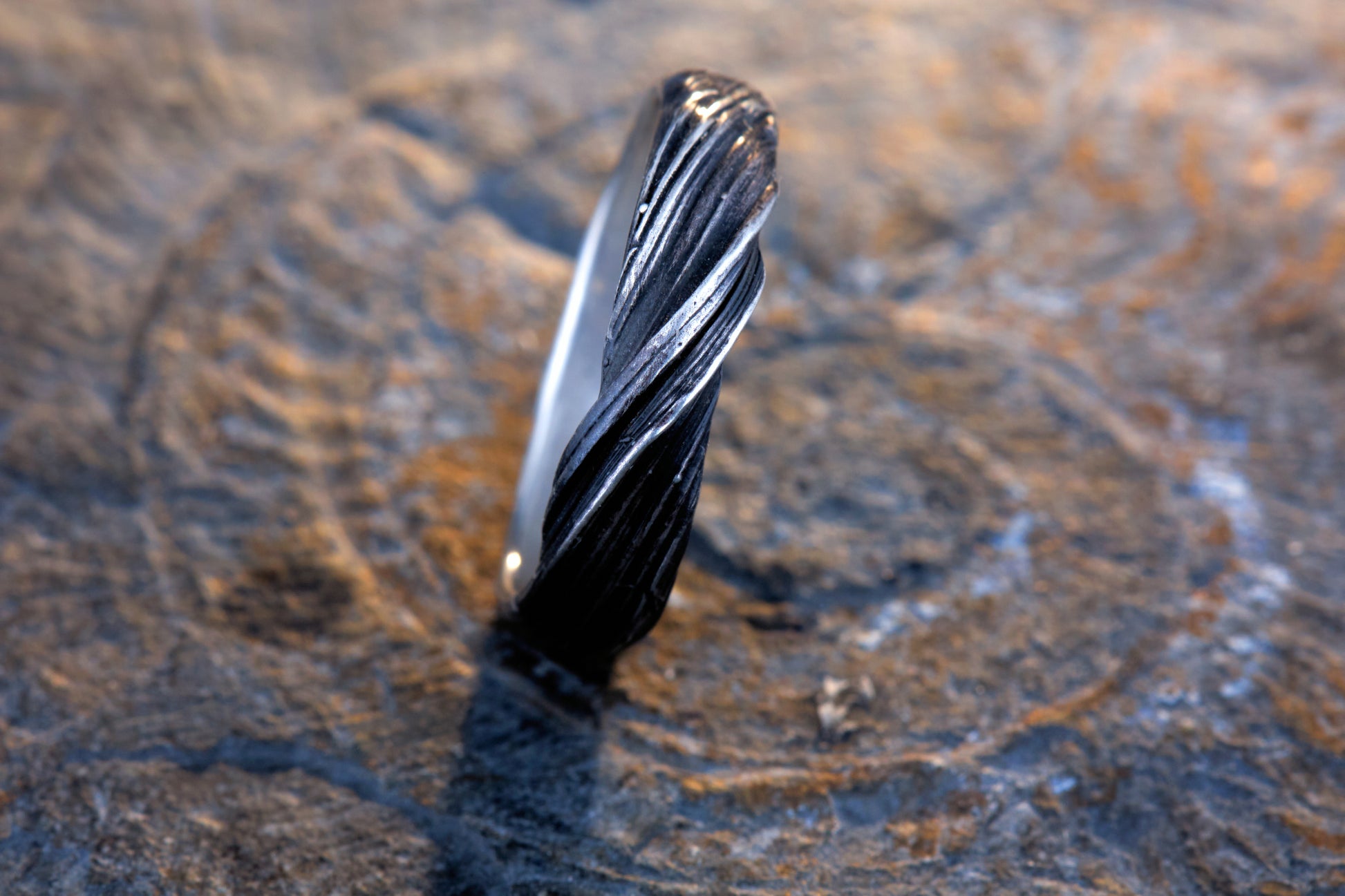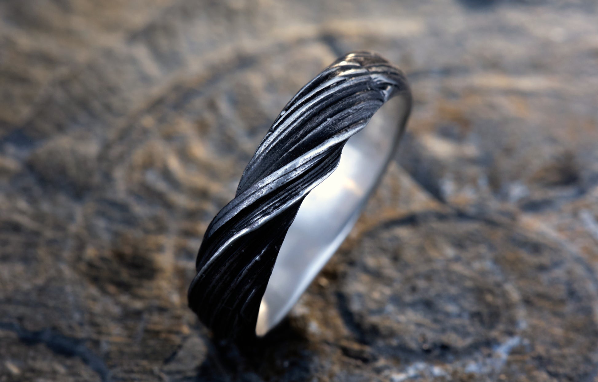 Kaugummi Ring No.4 | Handgefertigter Silberring | Mitsuro Hikime Wachstechnik | Holzmaserung Optik | Japanische Tradition | Schmuckring | Goldschmiede Deutschland