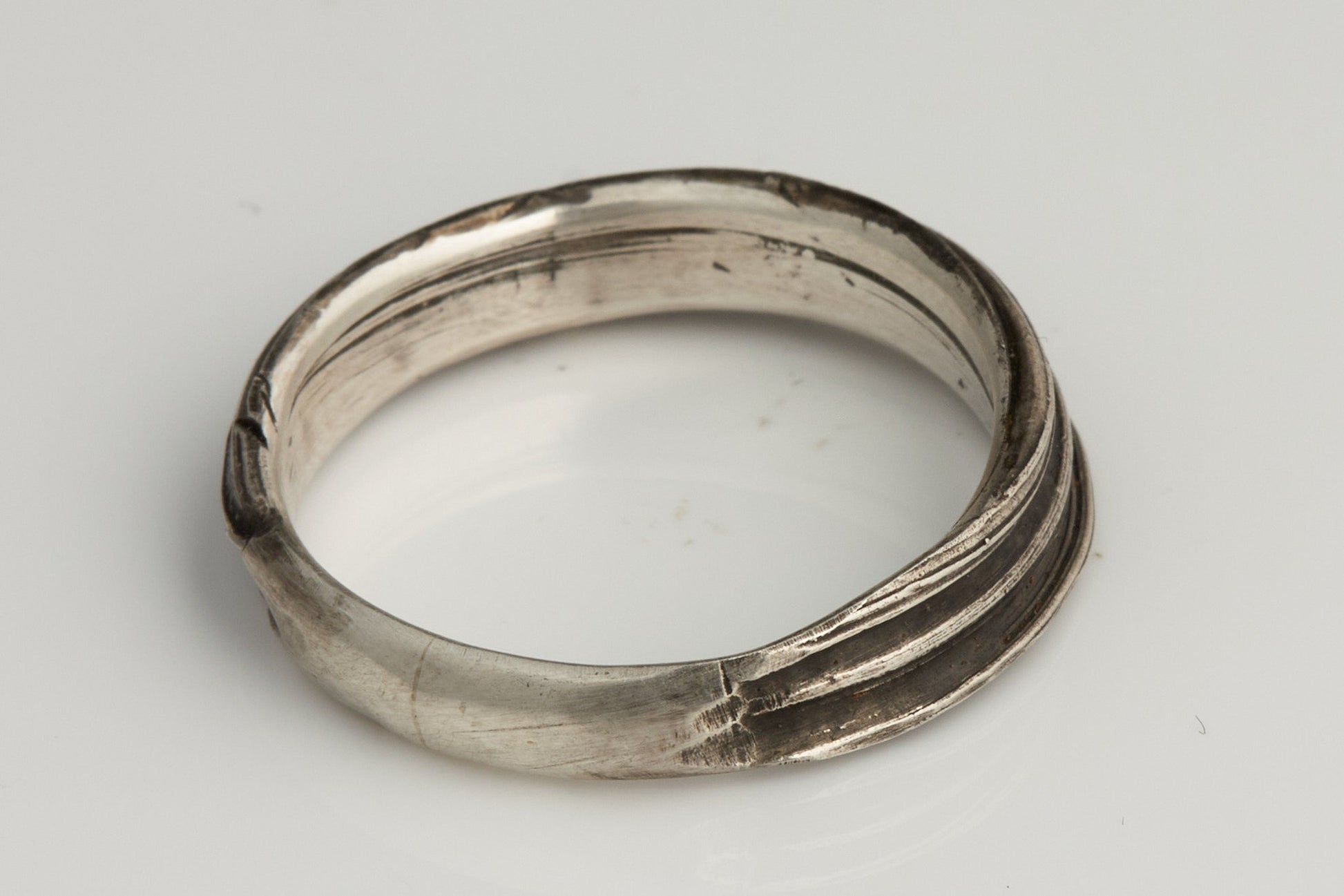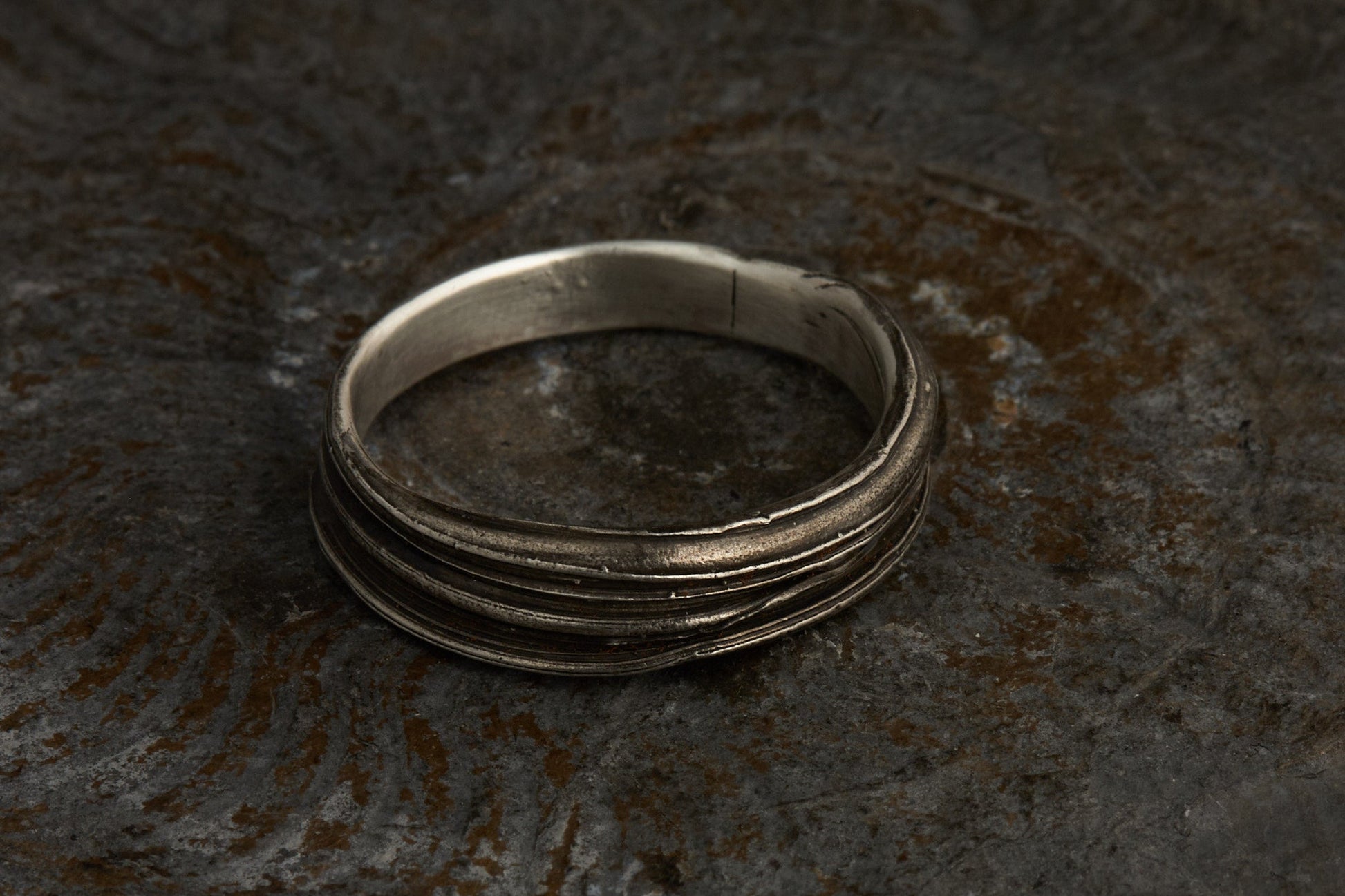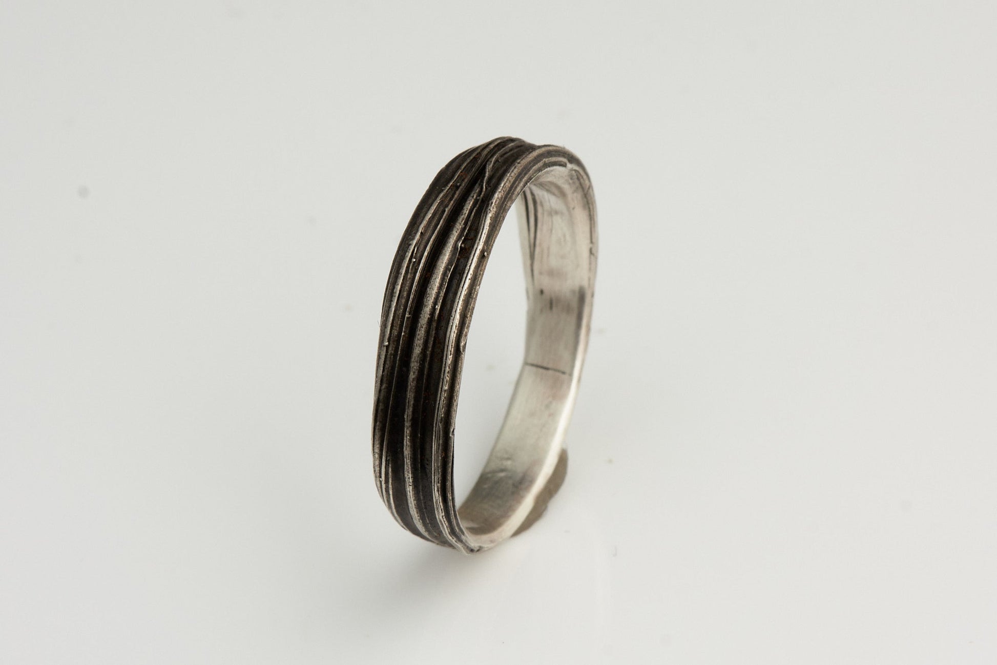 Entdecke die zeitlose Eleganz und das einzigartige Design meines geschwärzten Rings aus 925er Silber, der mithilfe der traditionellen Mitsuro Hikime Wachs Technik hergestellt wurde. Diese faszinierende Technik verleiht dem Ring eine unverwechselbare Textur und ein raffiniertes Aussehen. Über die gesamte Länge des Rings ziehen sich mehrere kunstvolle Streifen, die das Licht auf eine besondere Weise reflektieren und dem Schmuckstück eine lebendige Dynamik verleihen.