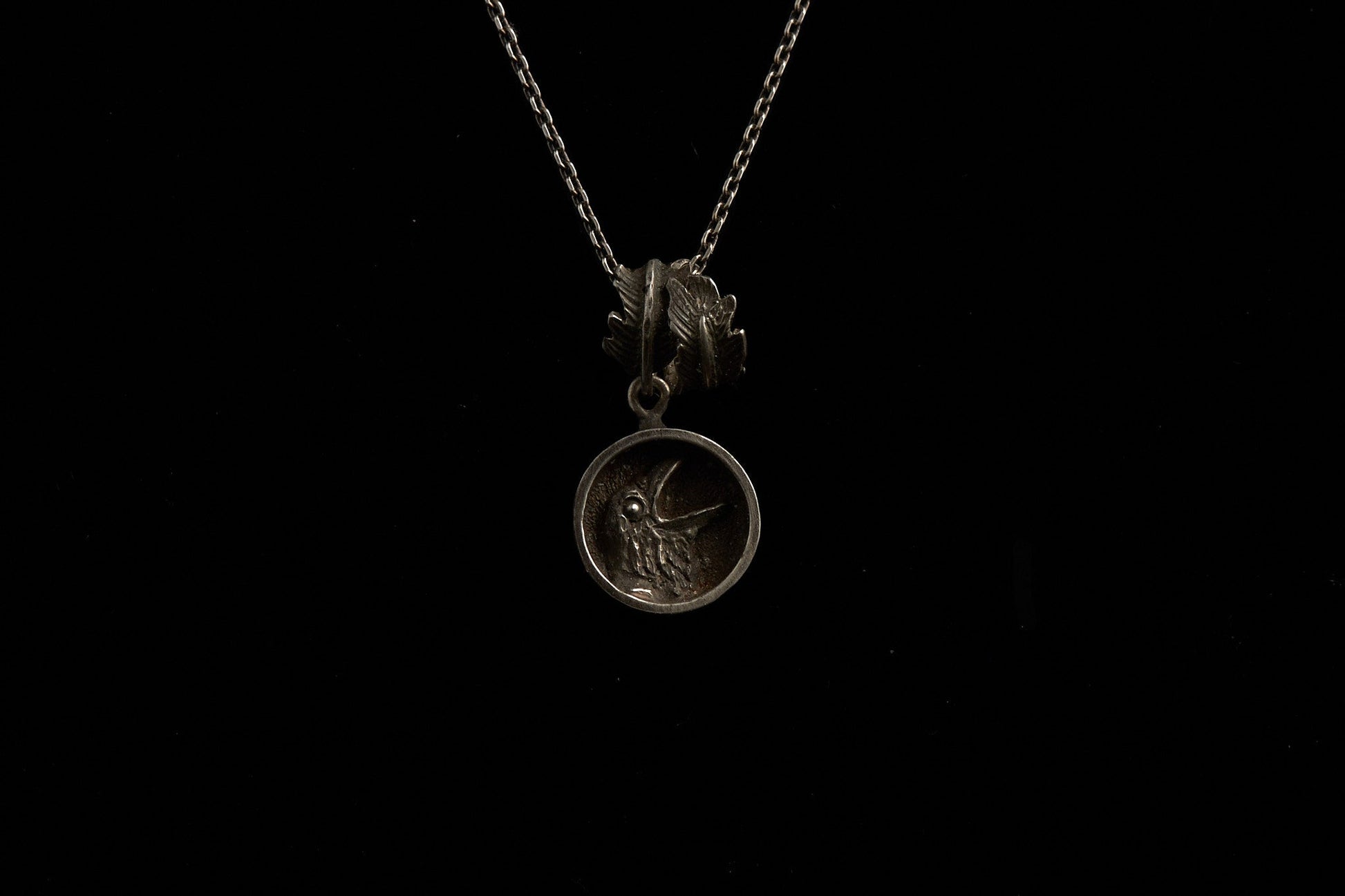 Kleiner Rabenanhänger mit Feder Symbol für Weisheit und Intuition in 925 Silber geschwärzt