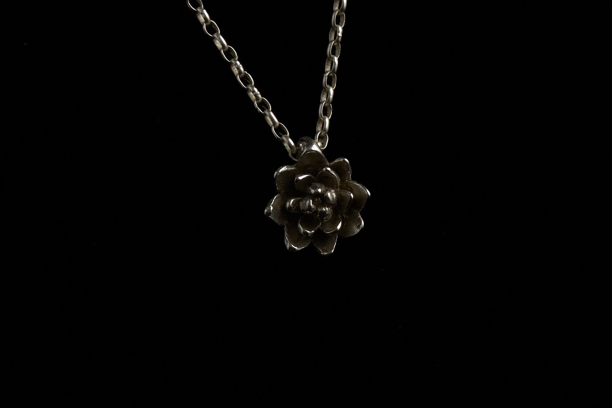 kleiner Seerosenanhänger aus 925 Silber geschwärzt