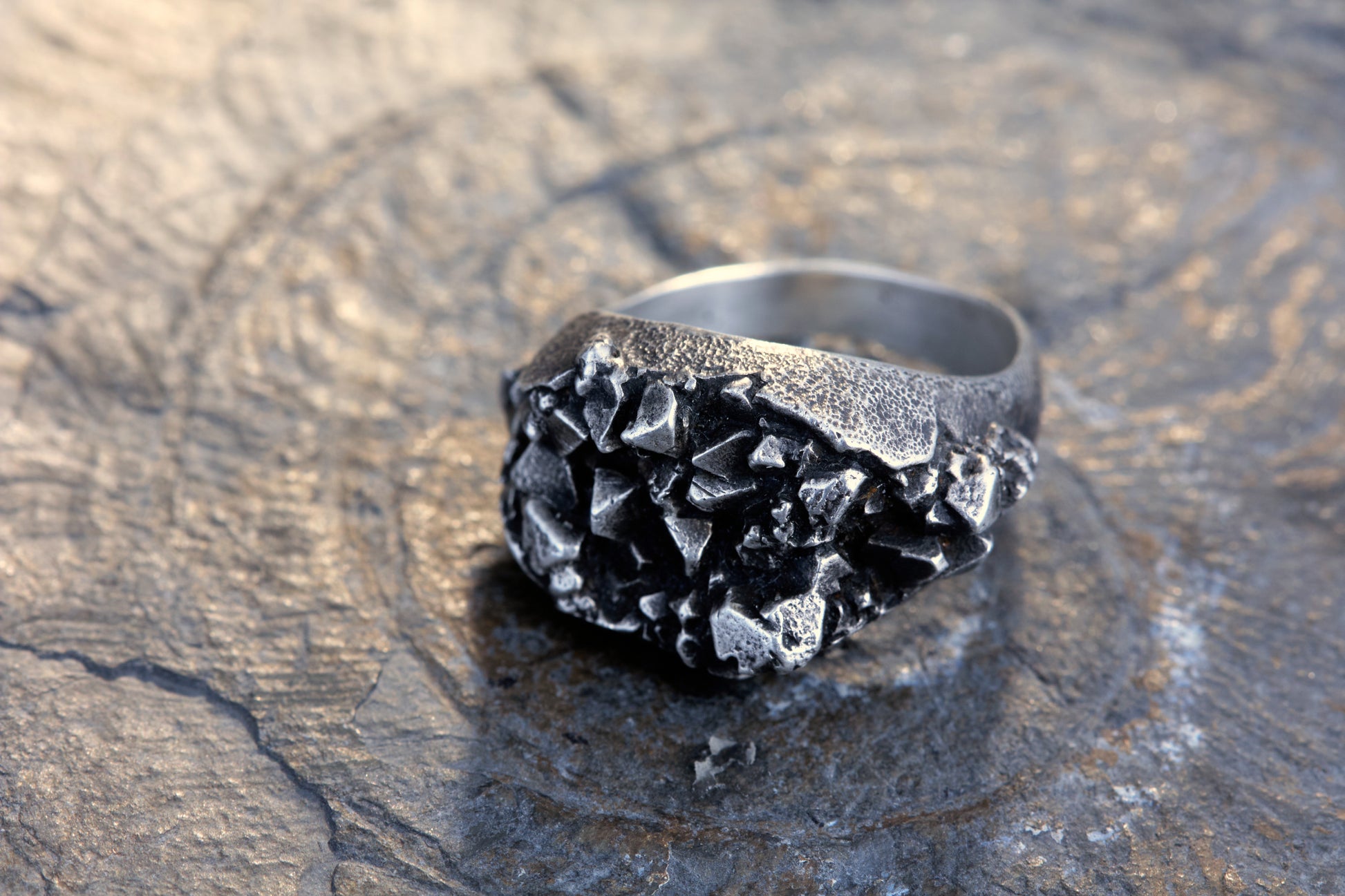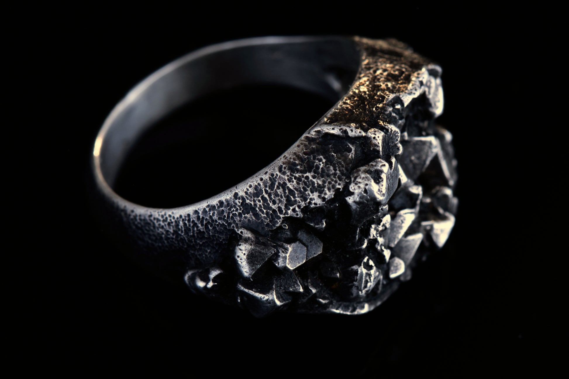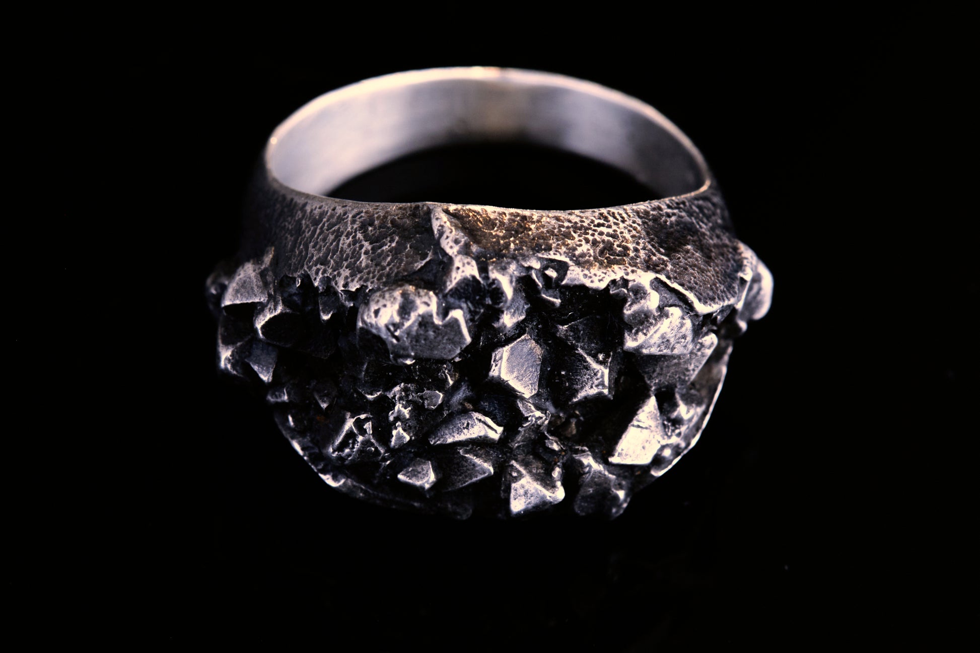 Dieser außergewöhnliche Ring entsteht durch eine spezielle Technik, die ich entwickelt habe. Aus den Hohlräumen wachsen dann filigrane Silberkristalle, die dem Ring seine einzigartige, fast magische Ausstrahlung verleihen.