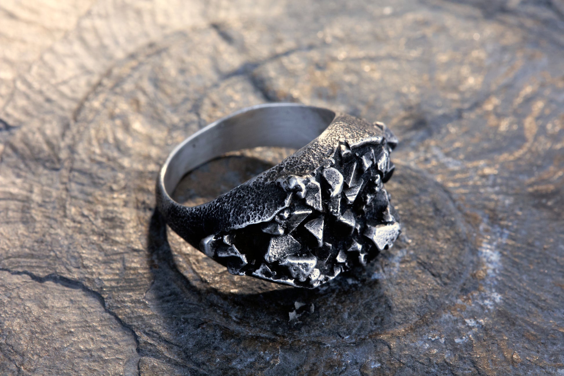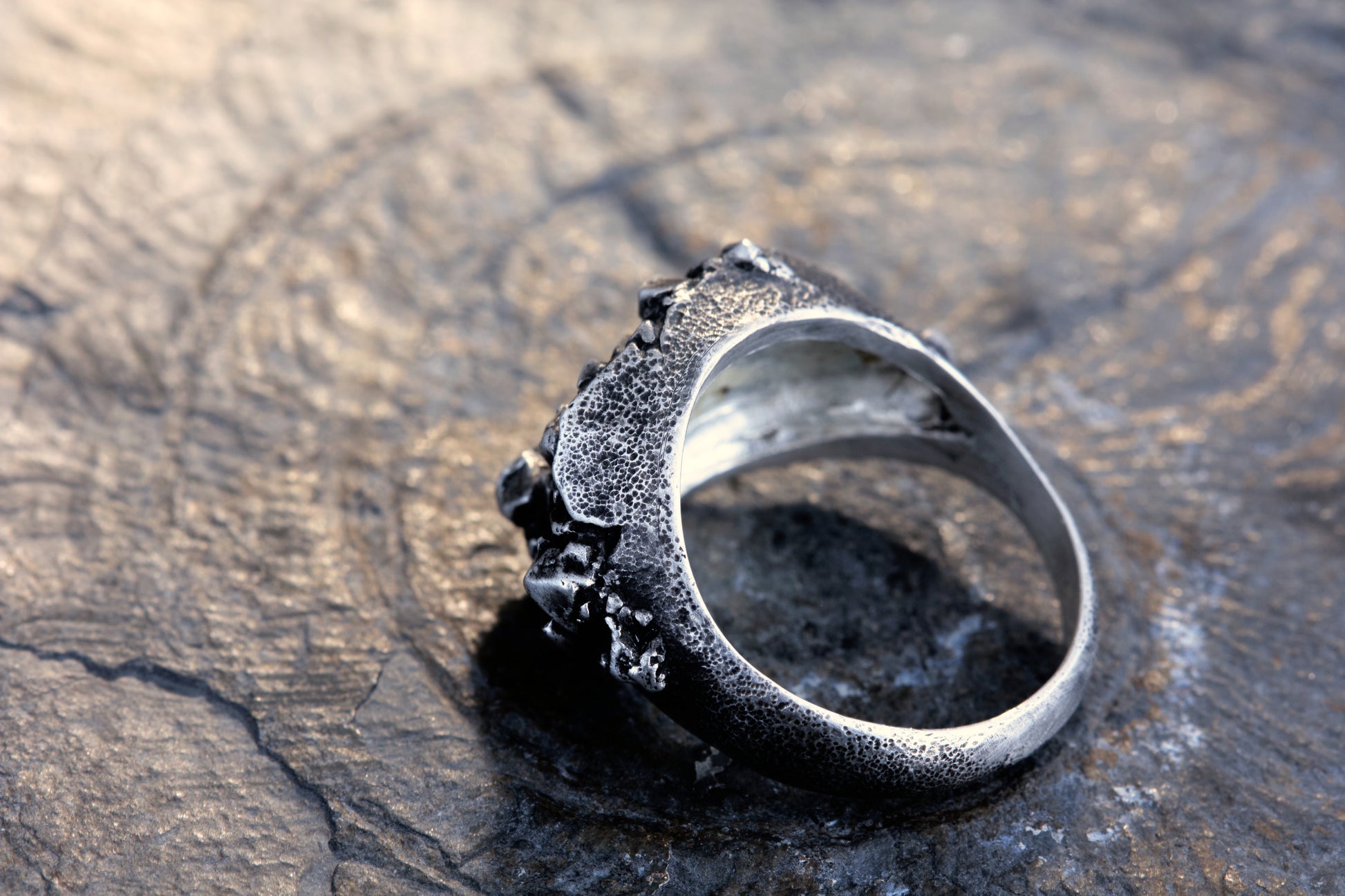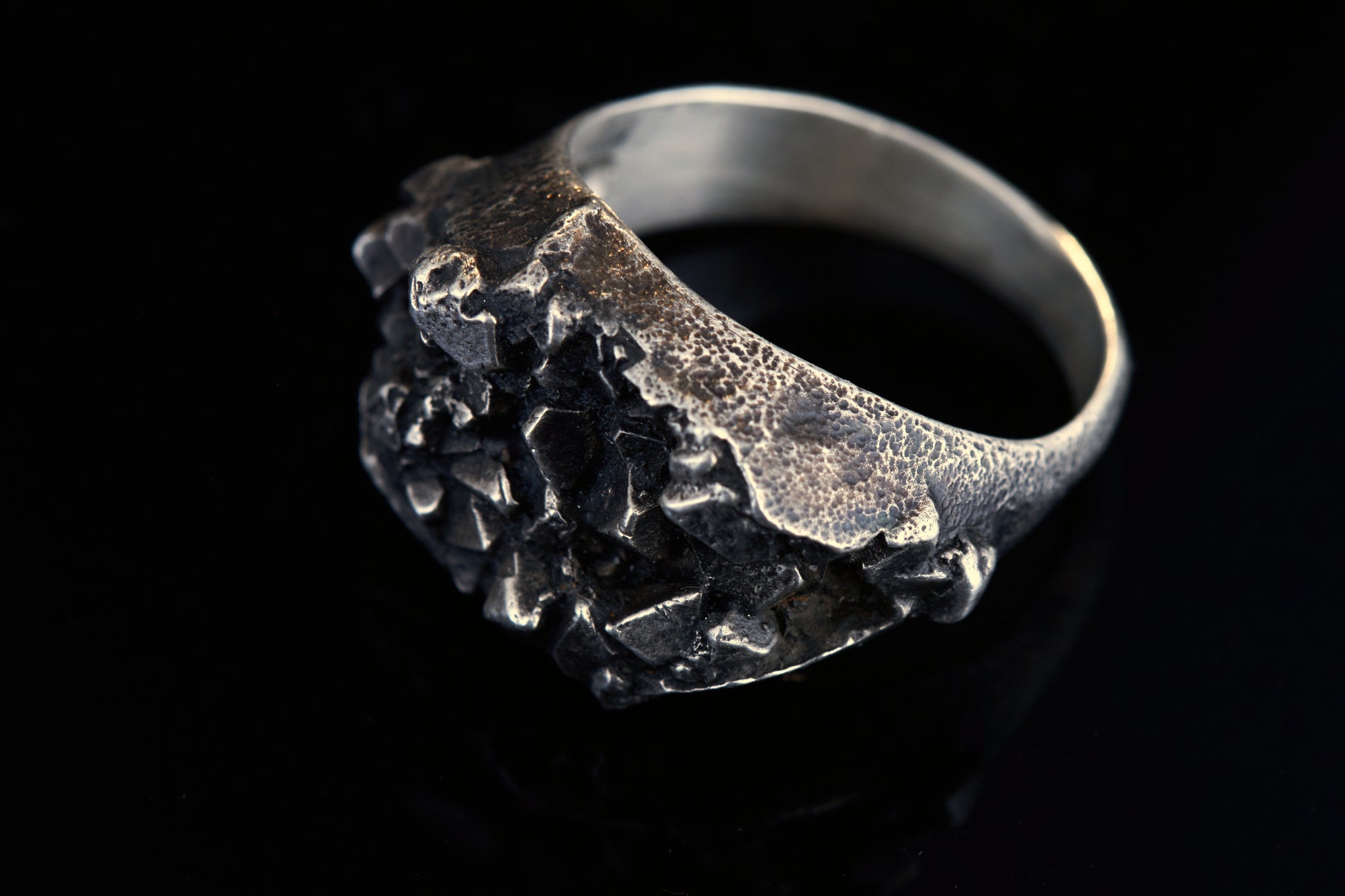 Dieser außergewöhnliche Ring entsteht durch eine spezielle Technik, die ich entwickelt habe. Aus den Hohlräumen wachsen dann filigrane Silberkristalle, die dem Ring seine einzigartige, fast magische Ausstrahlung verleihen.