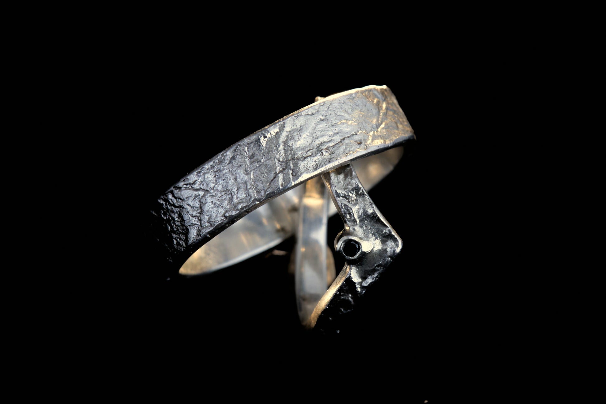 Markante Wishbone Trauringe | Schwarzer Diamant | Retikulierte Oberfläche Matt | Handgefertigte Eheringe | Goldschmiede Deutschland | Einzigartige Trauringe | Statement Eheringe | Besondere Trauringe | Moderne Trauringe | Außergewöhnliche Eheringe