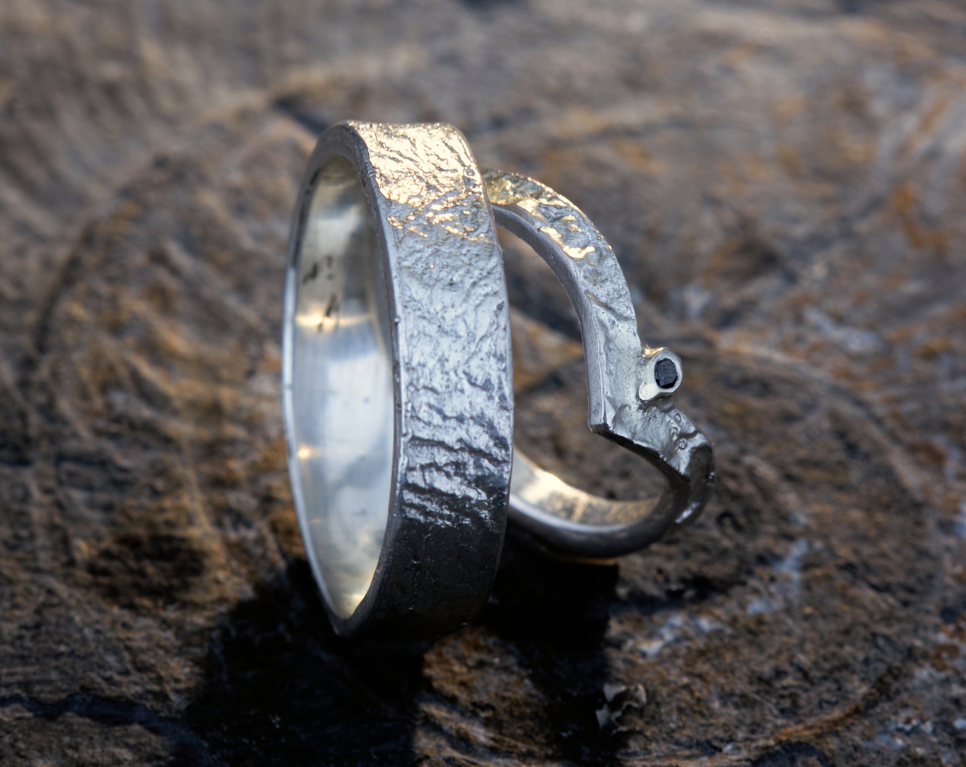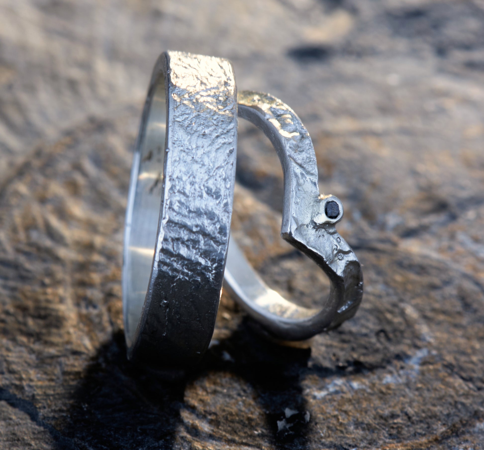 - Außergewöhnliche Eheringe mit schwarzem Diamant