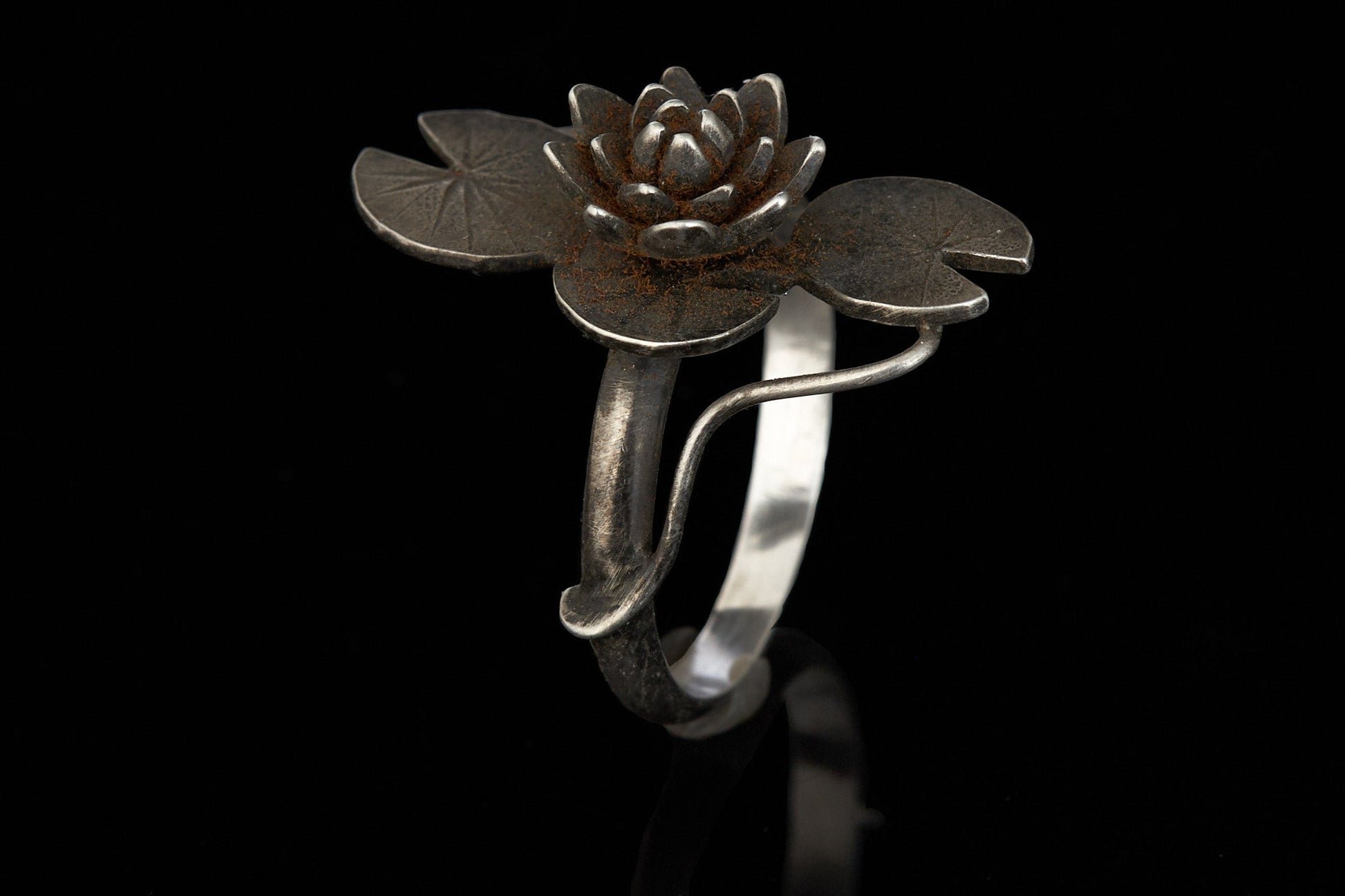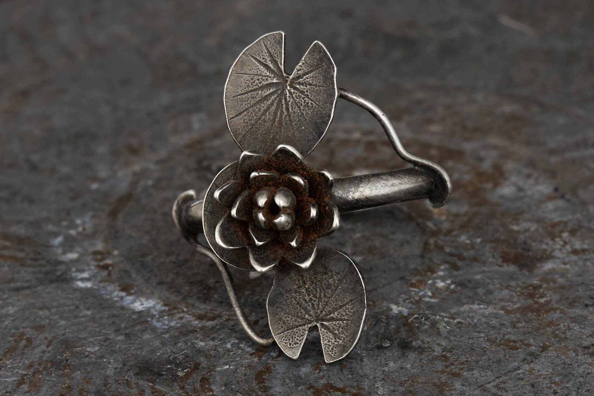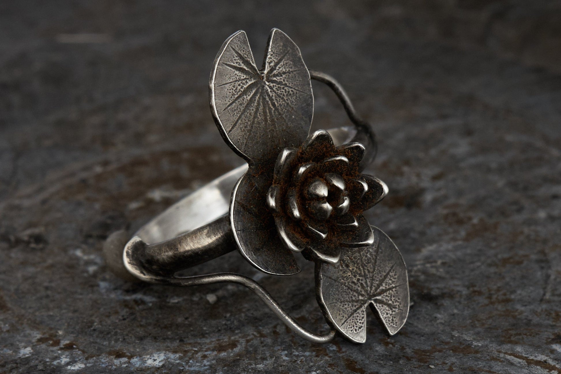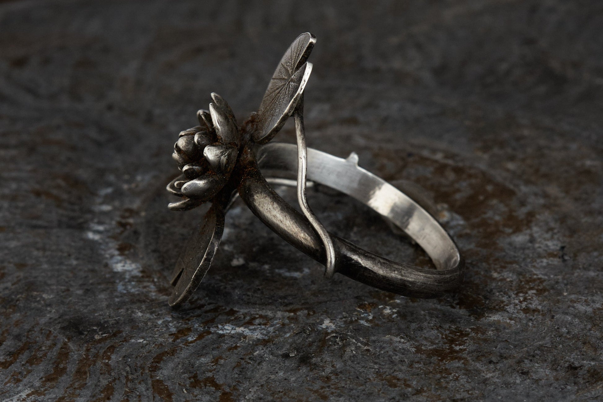 Seerosen Ring großer Statement Ring in 925 Silber geschwärzt