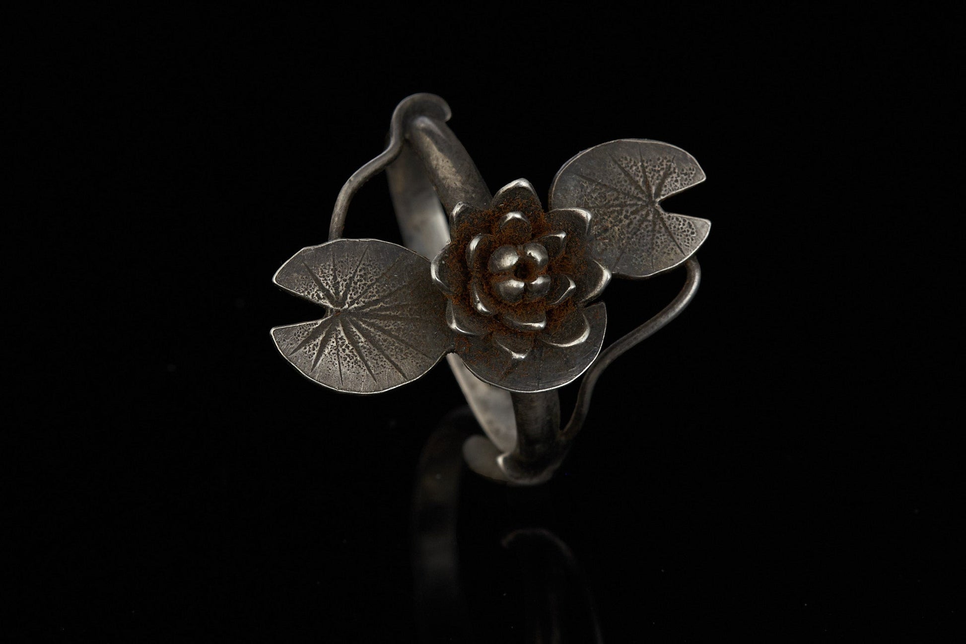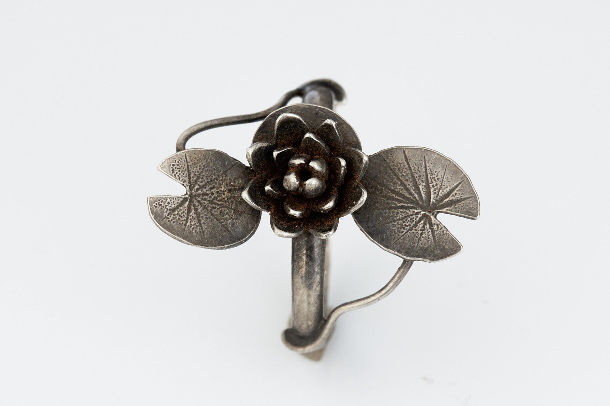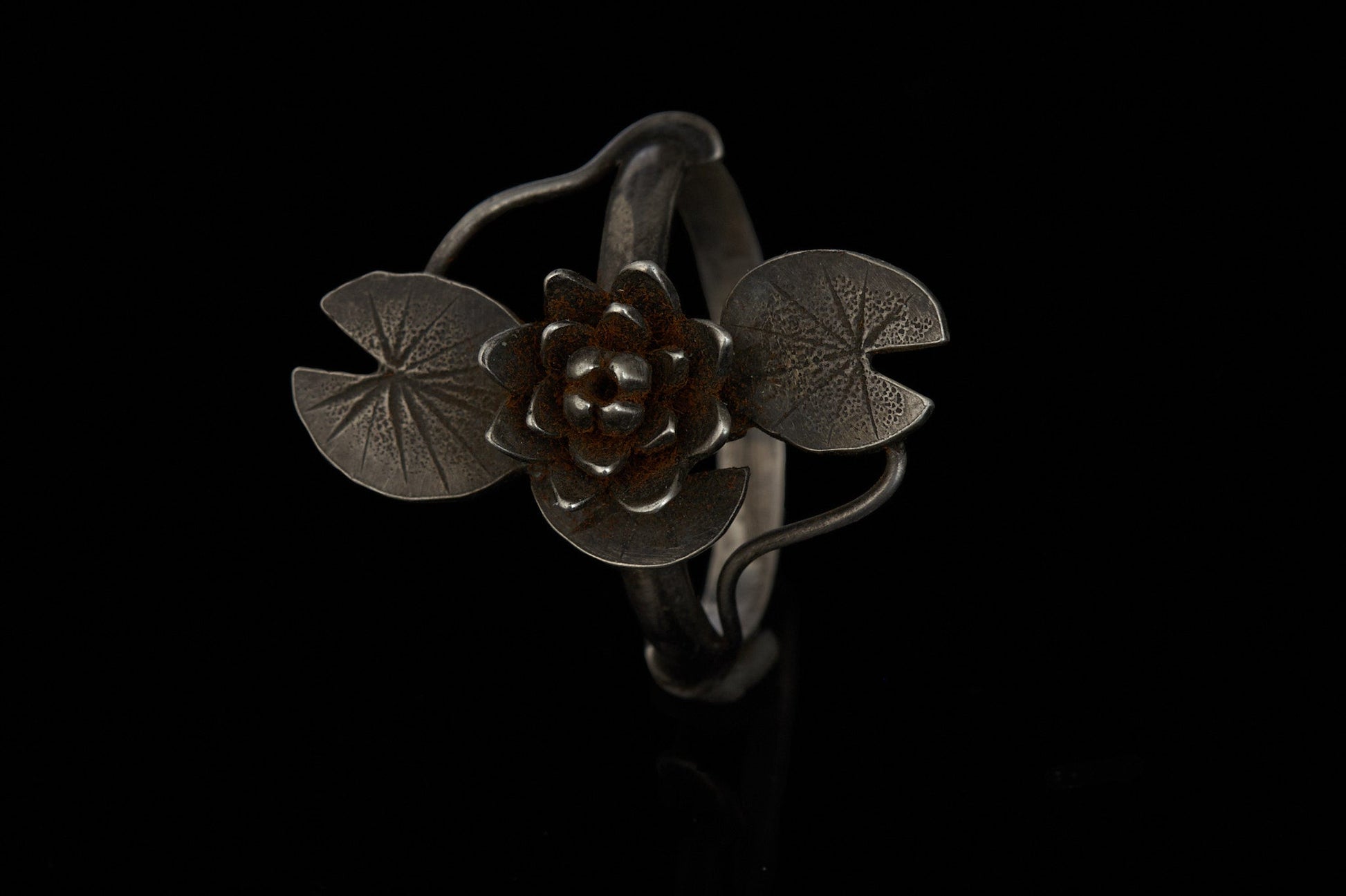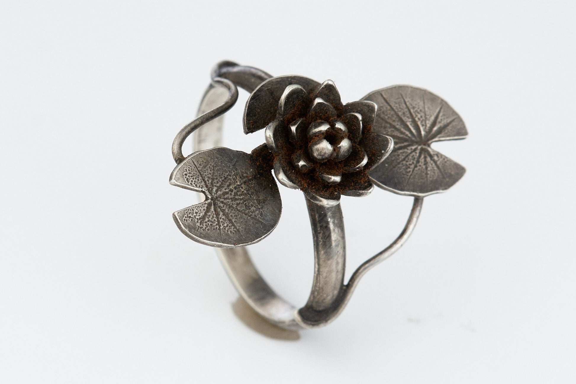 Seerosen Ring großer Statement Ring in 925 Silber geschwärzt