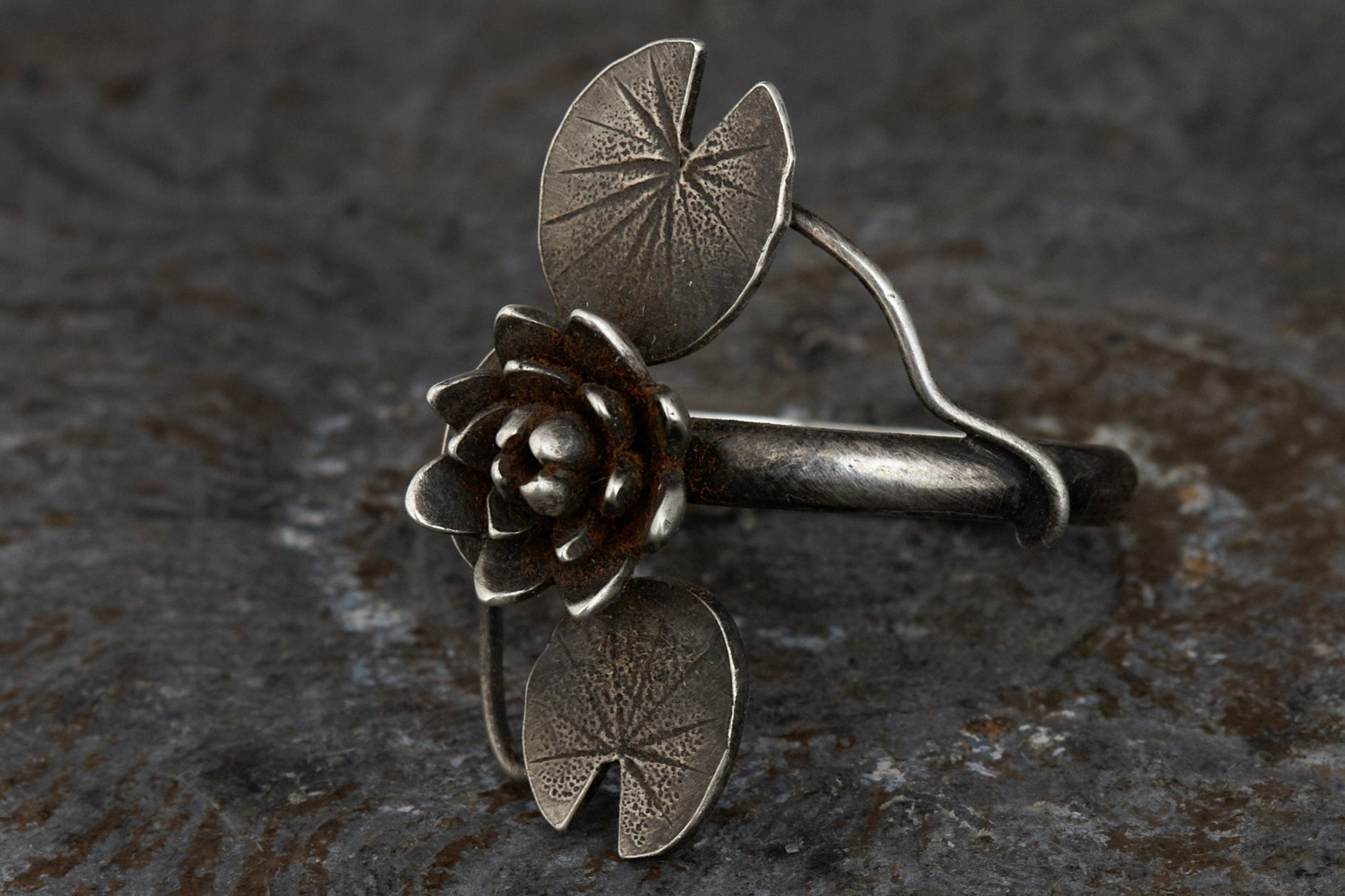 Entdecke die faszinierende Schönheit meines geschwärzten Seerosenrings aus hochwertigem 925er Silber, der die harmonische Anmut der Natur in einem zeitlosen Schmuckstück vereint. Dieser außergewöhnliche Ring kombiniert rustikale Eleganz mit künstlerischem Design und ist die perfekte Wahl für Liebhaber der Natur und ihrer Symbolik.