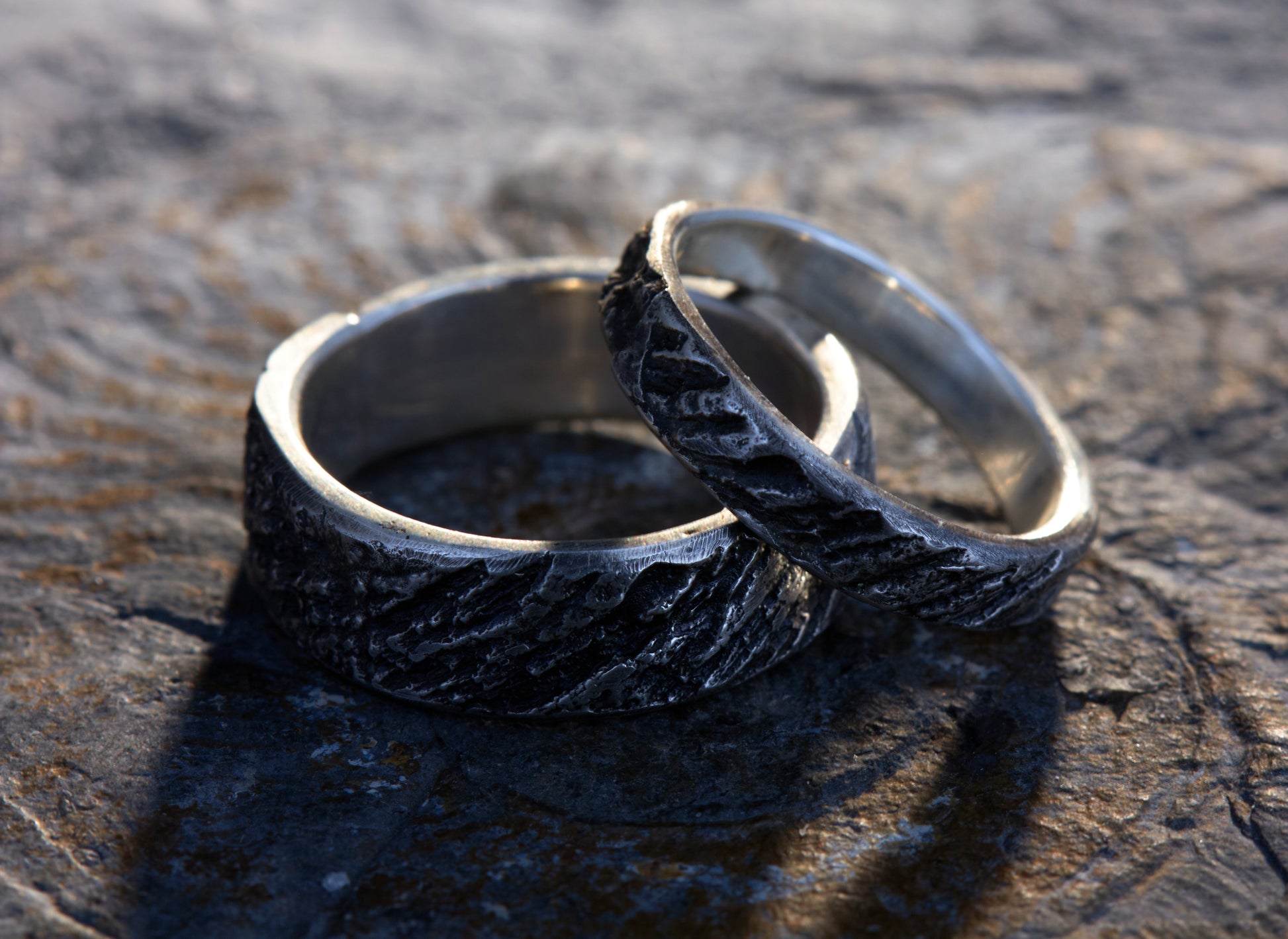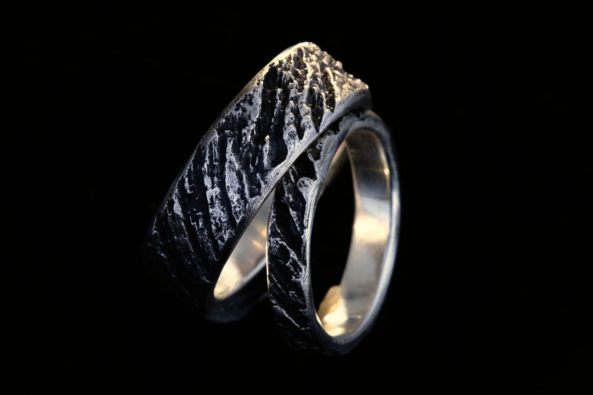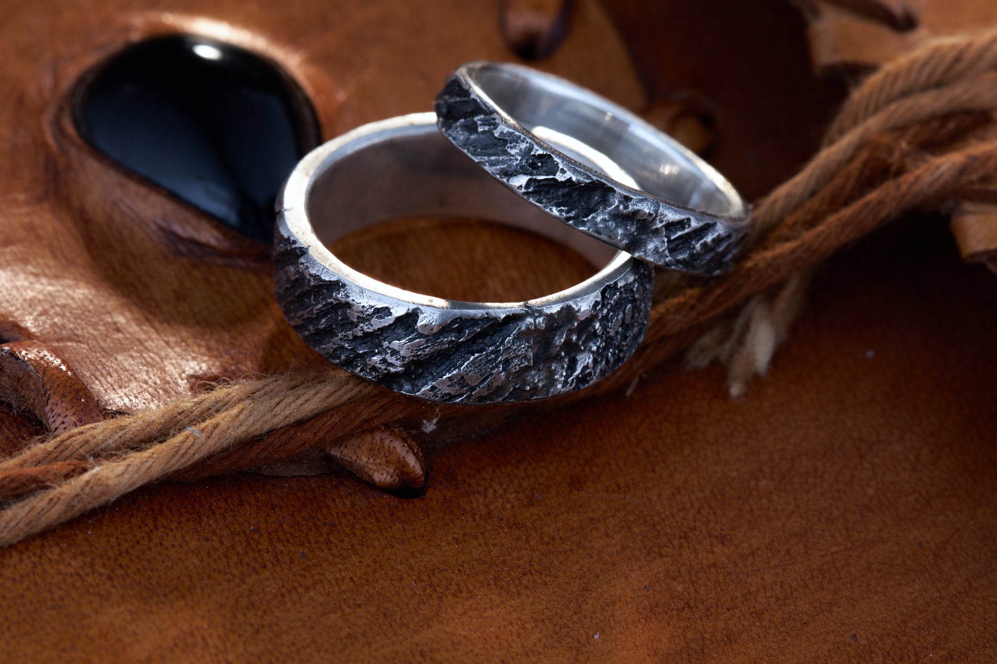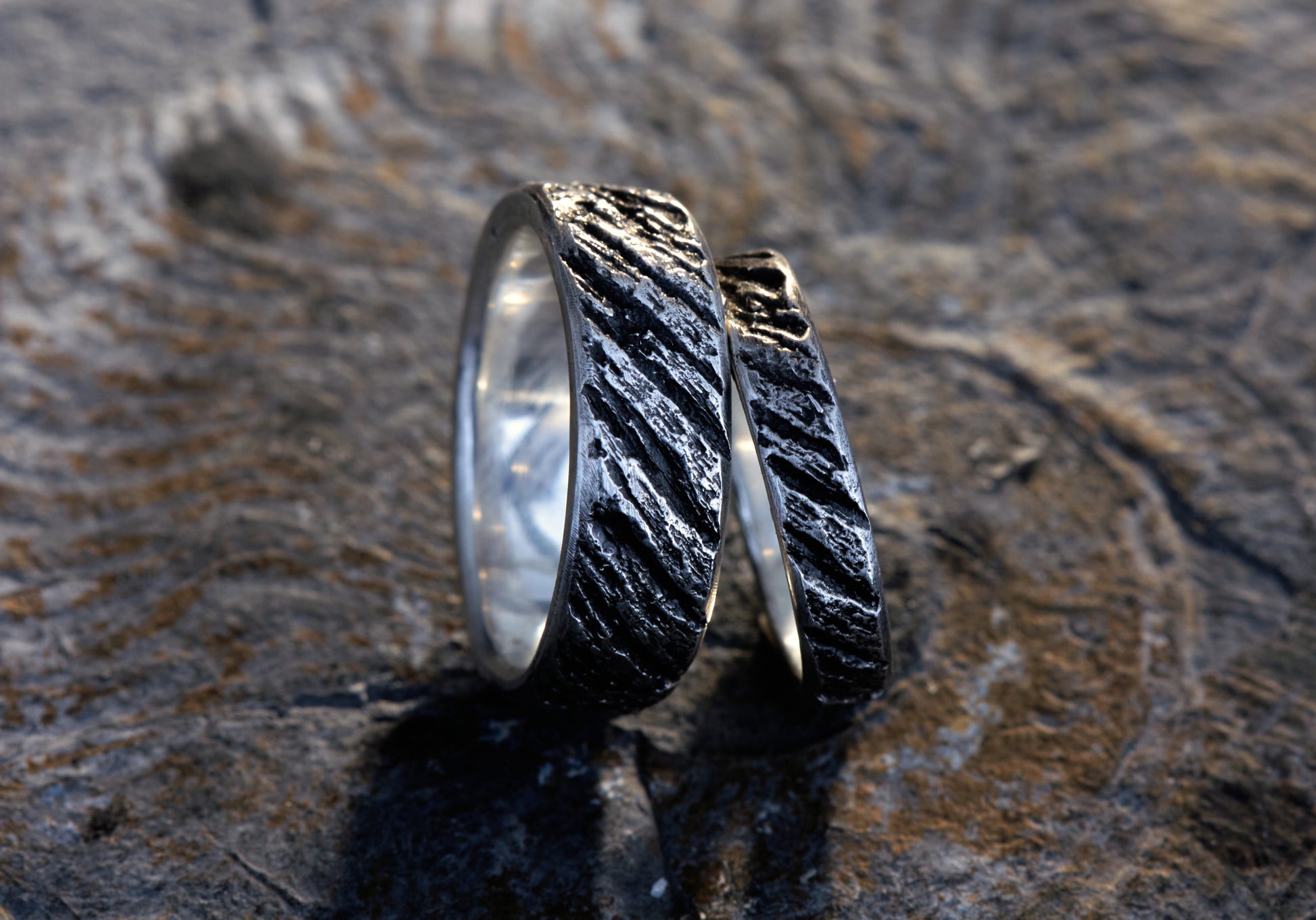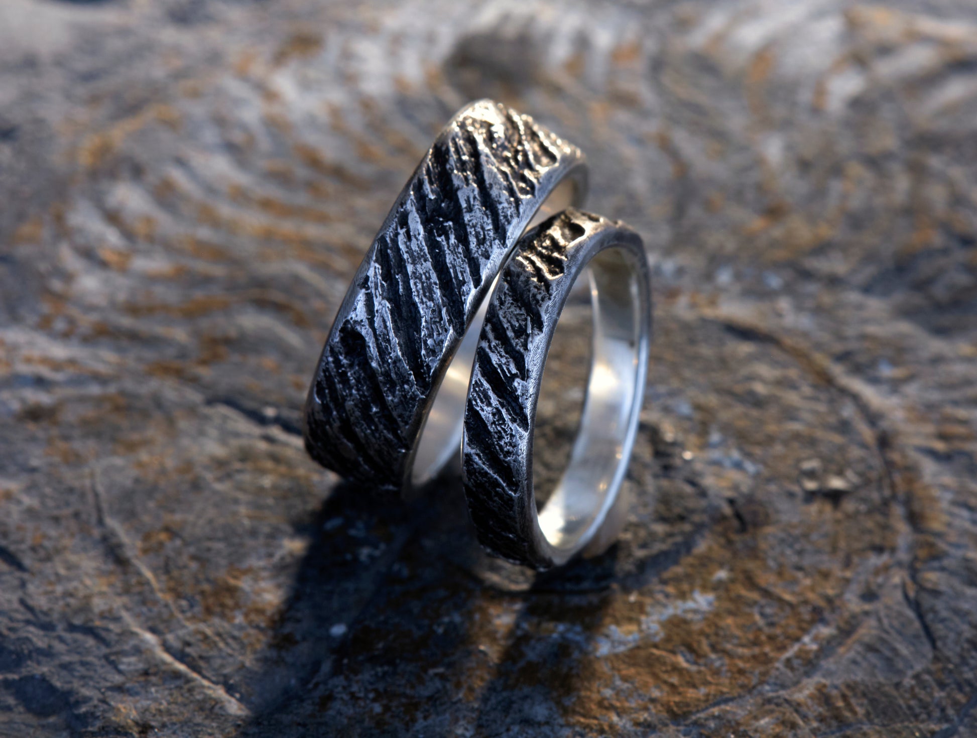 Trauringe 'Altes Holz' - Einzigartige 925 Silberringe mit geschwärzter Holzstruktur