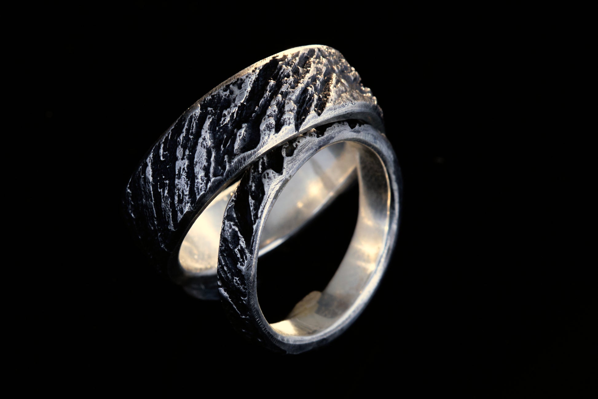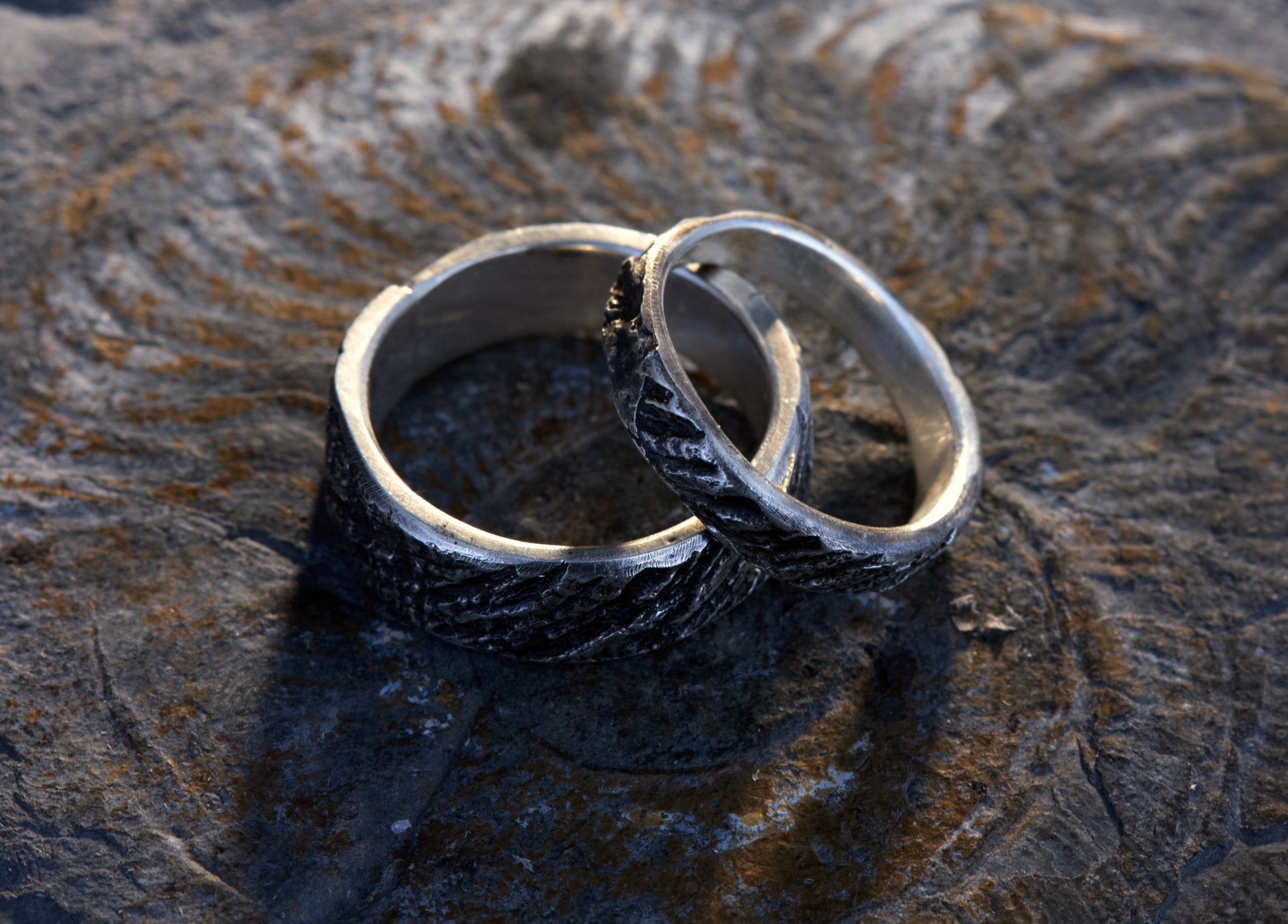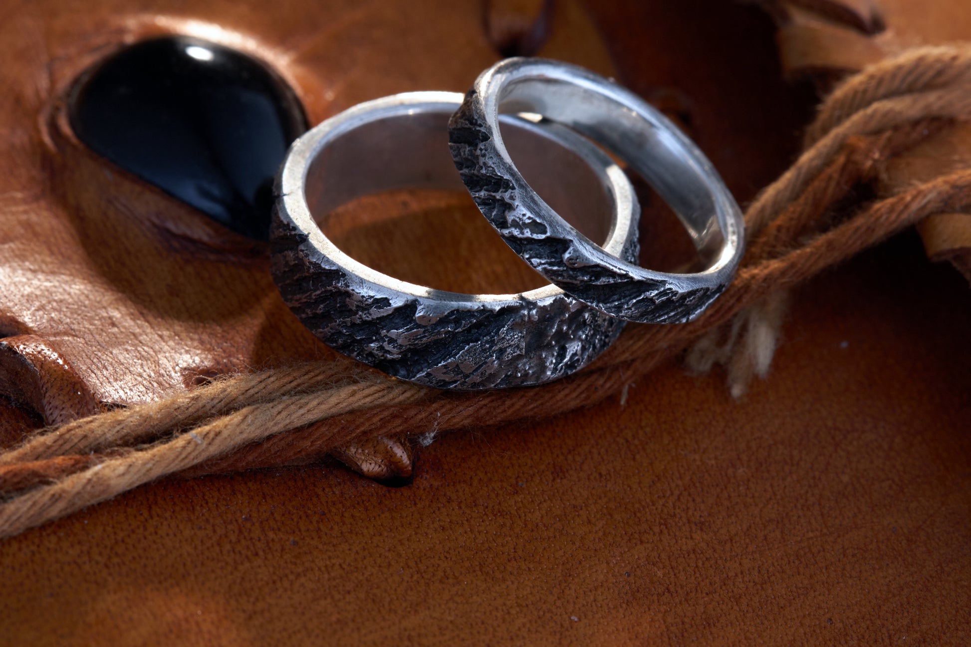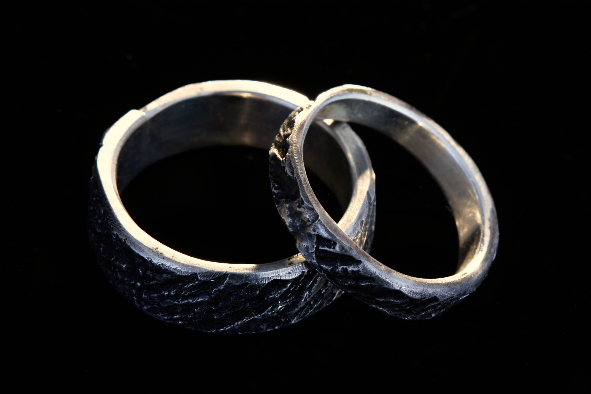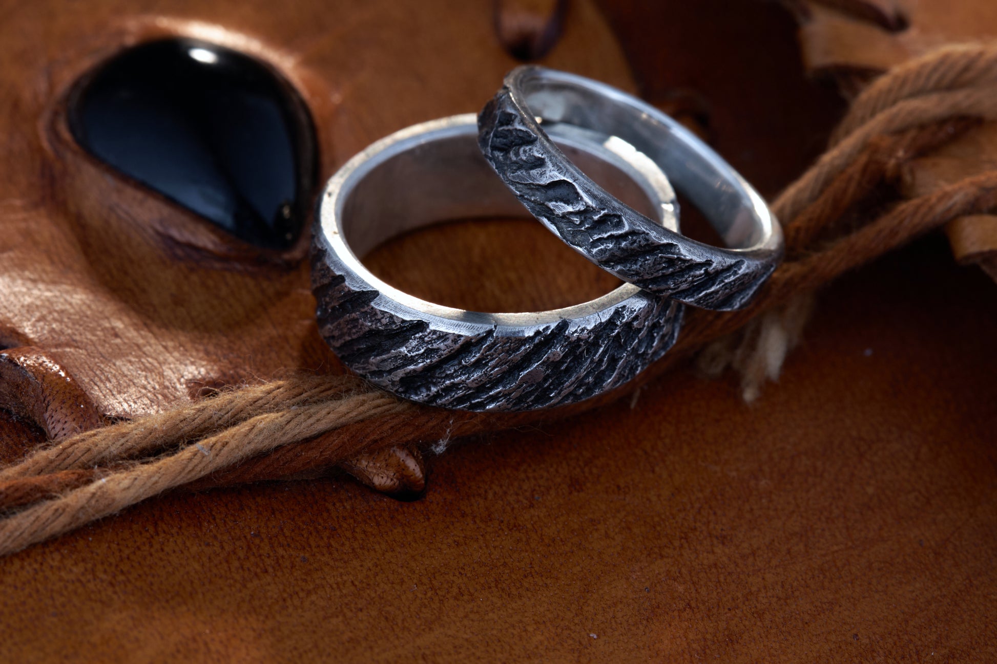 Trauringe 'Altes Holz' - Einzigartige 925 Silberringe mit geschwärzter Holzstruktur