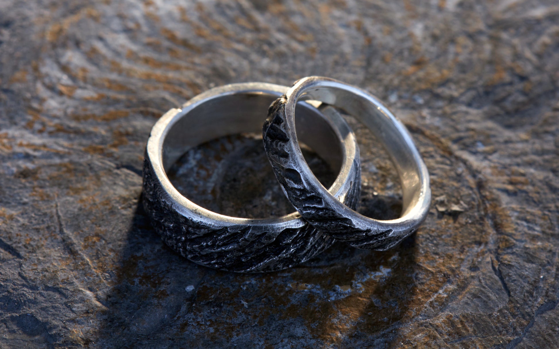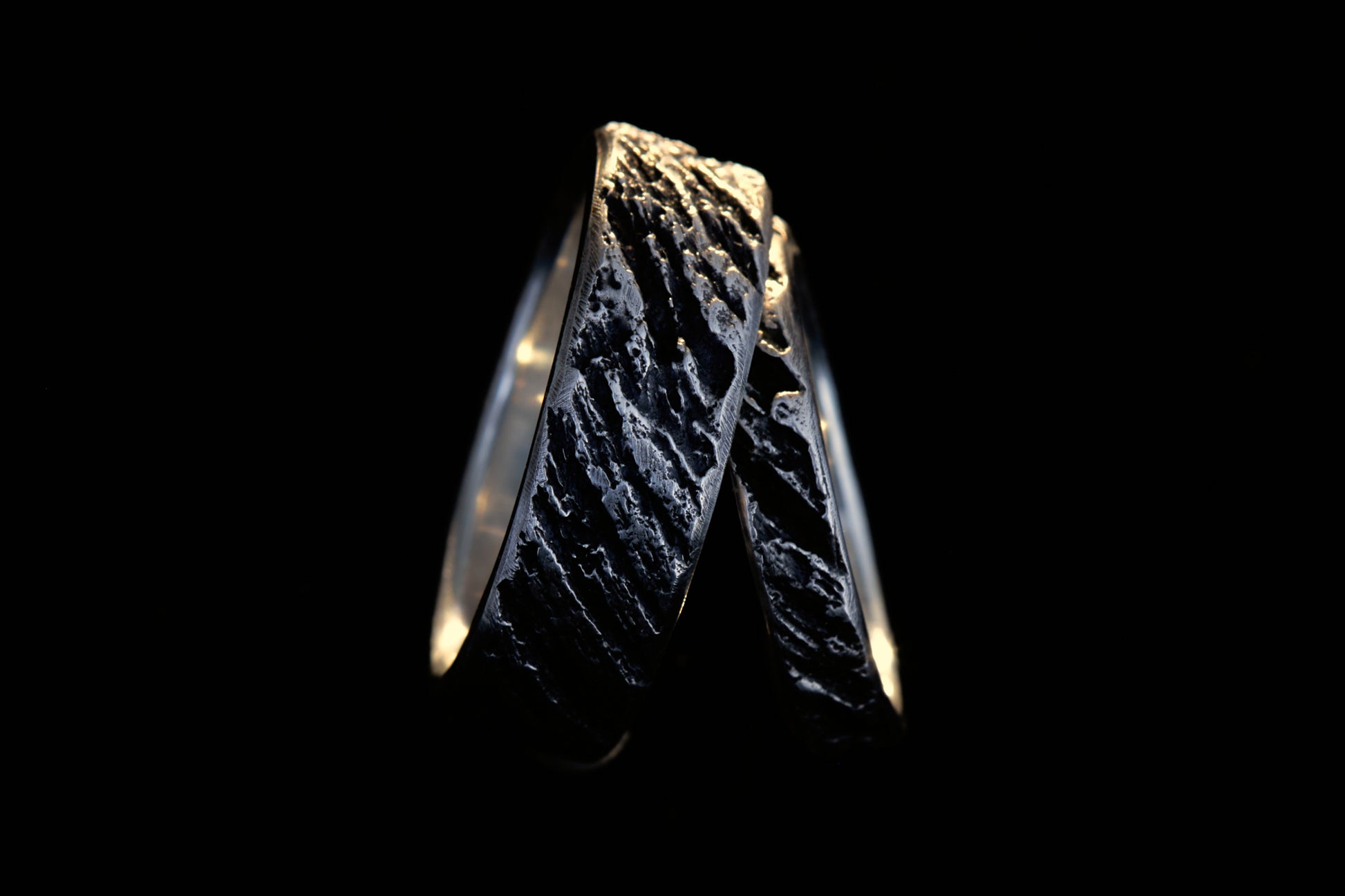 Spüren Sie die warme Ausstrahlung dieser besonderen Trauringe und tragen Sie ein Stück Natur an Ihrem Finger. Die geschwärzte Oberfläche verleiht jedem Ring einen individuellen Charakter - genau wie Ihre einzigartige Liebesgeschichte.