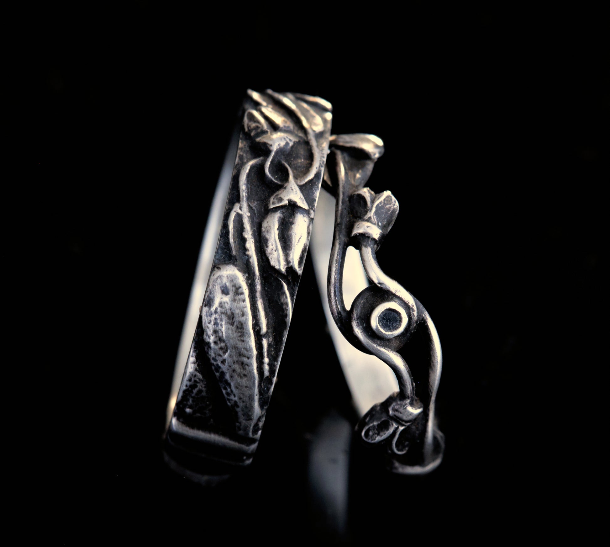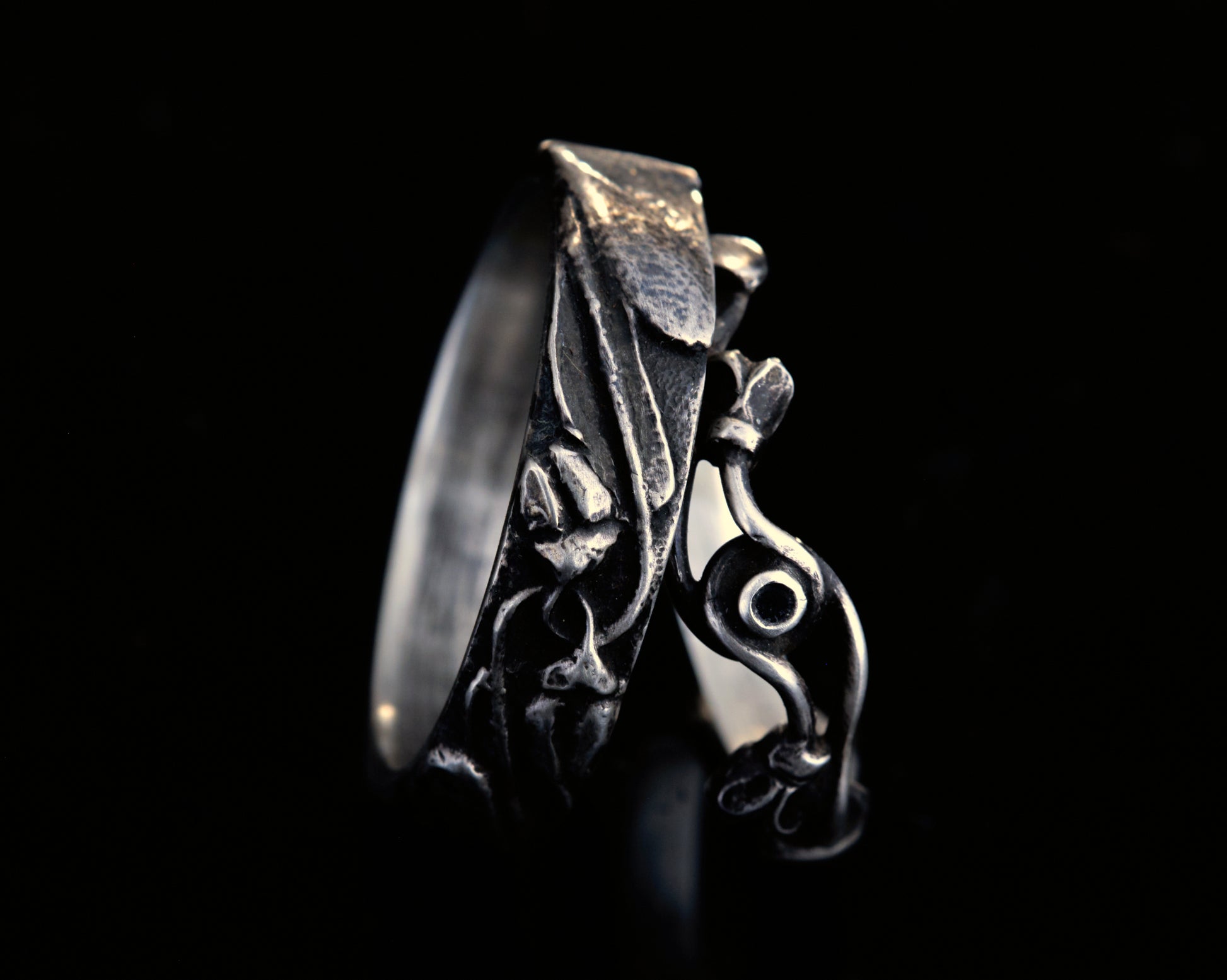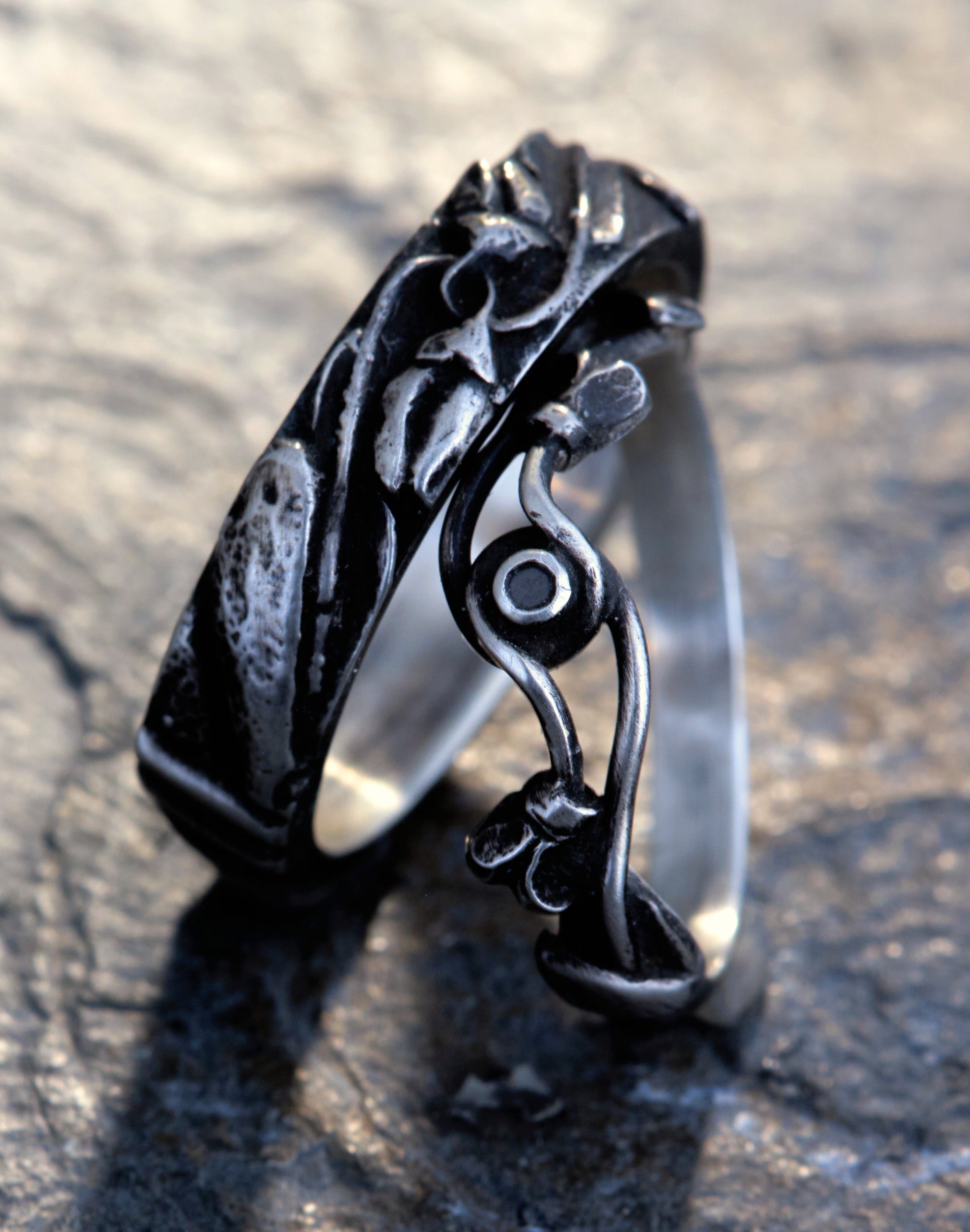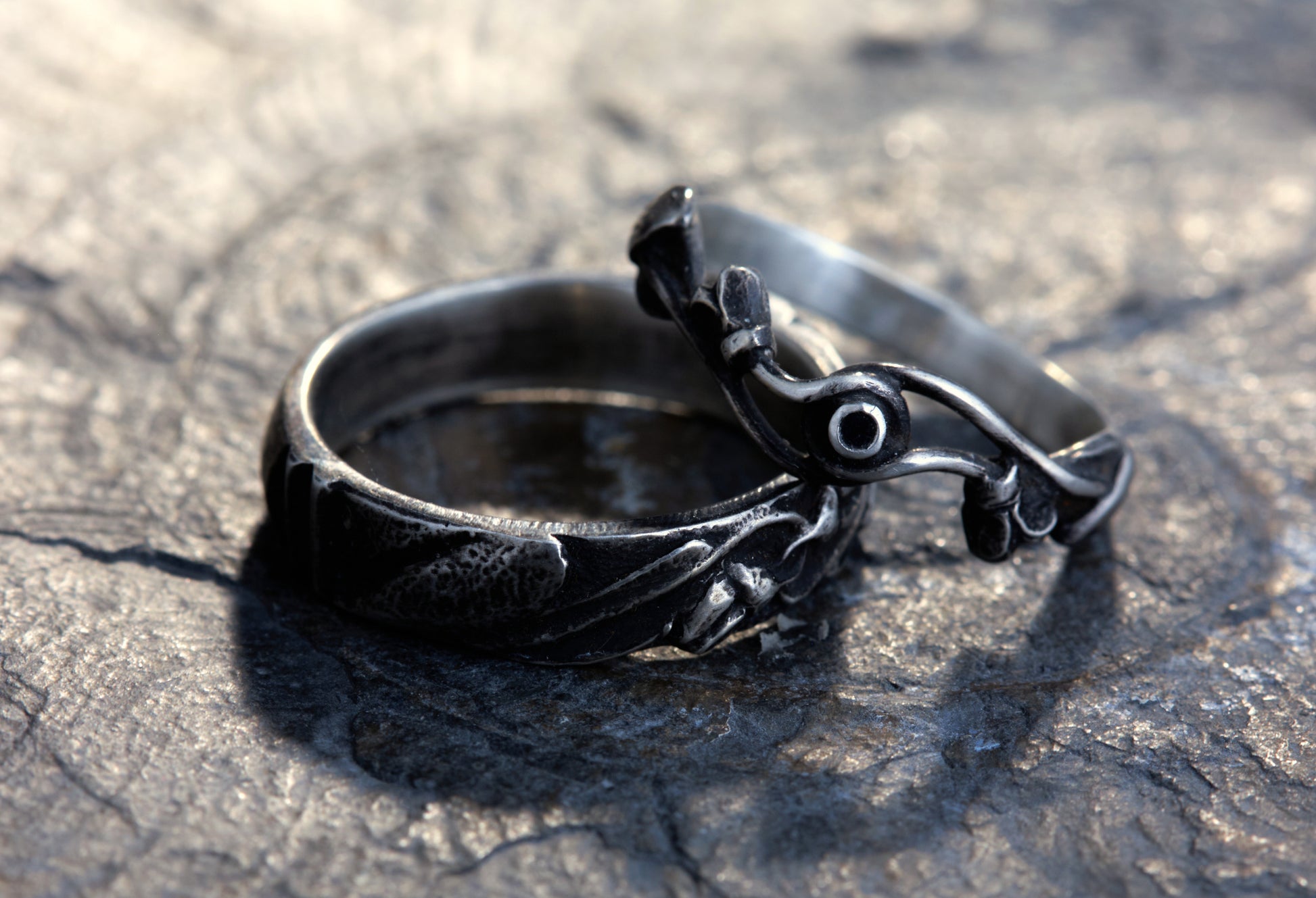 Trauringe 925 Silber Schneeglöckchen Art Deco | Schwarzer Diamant | Gothic Filigran | Handgefertigt
