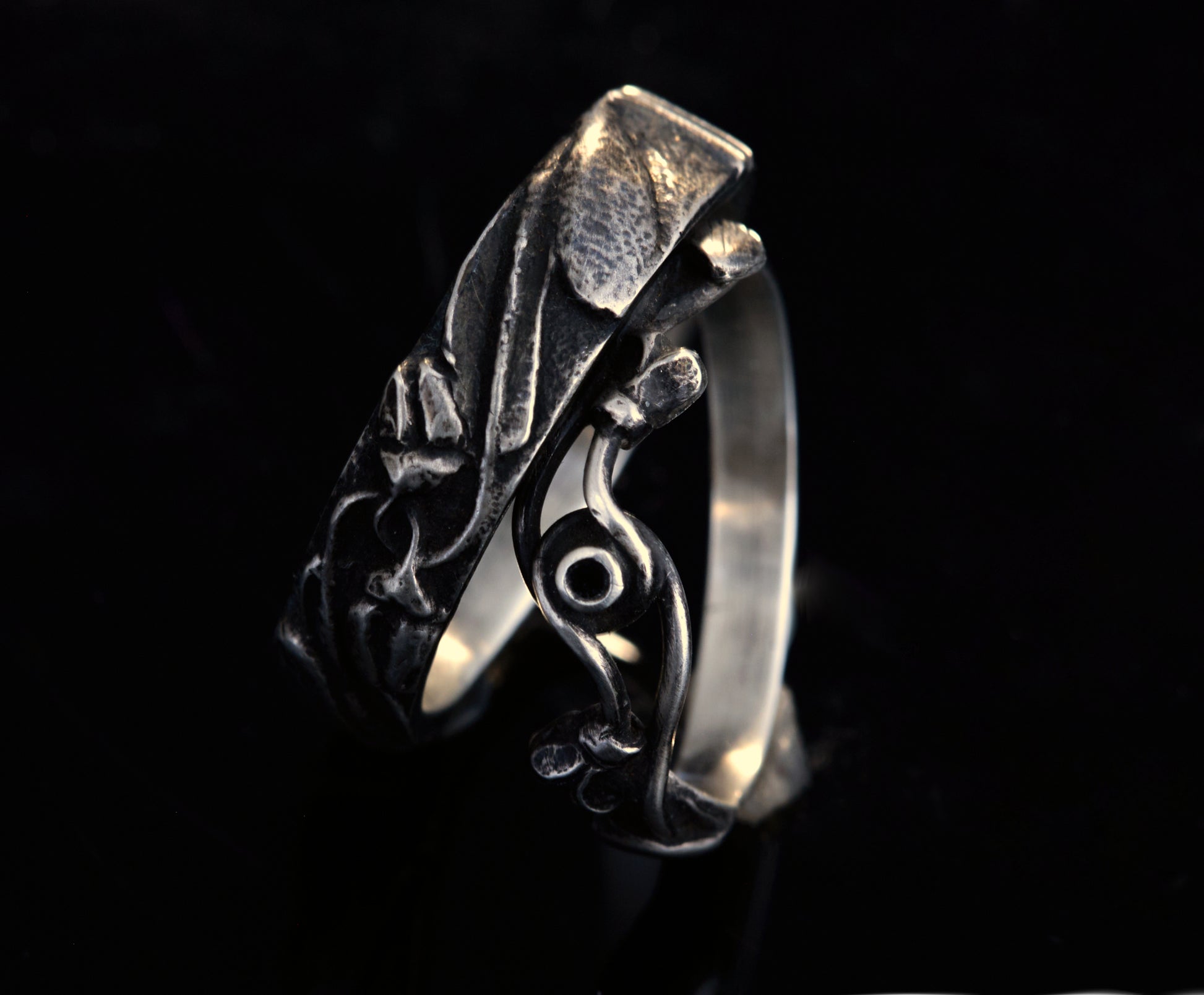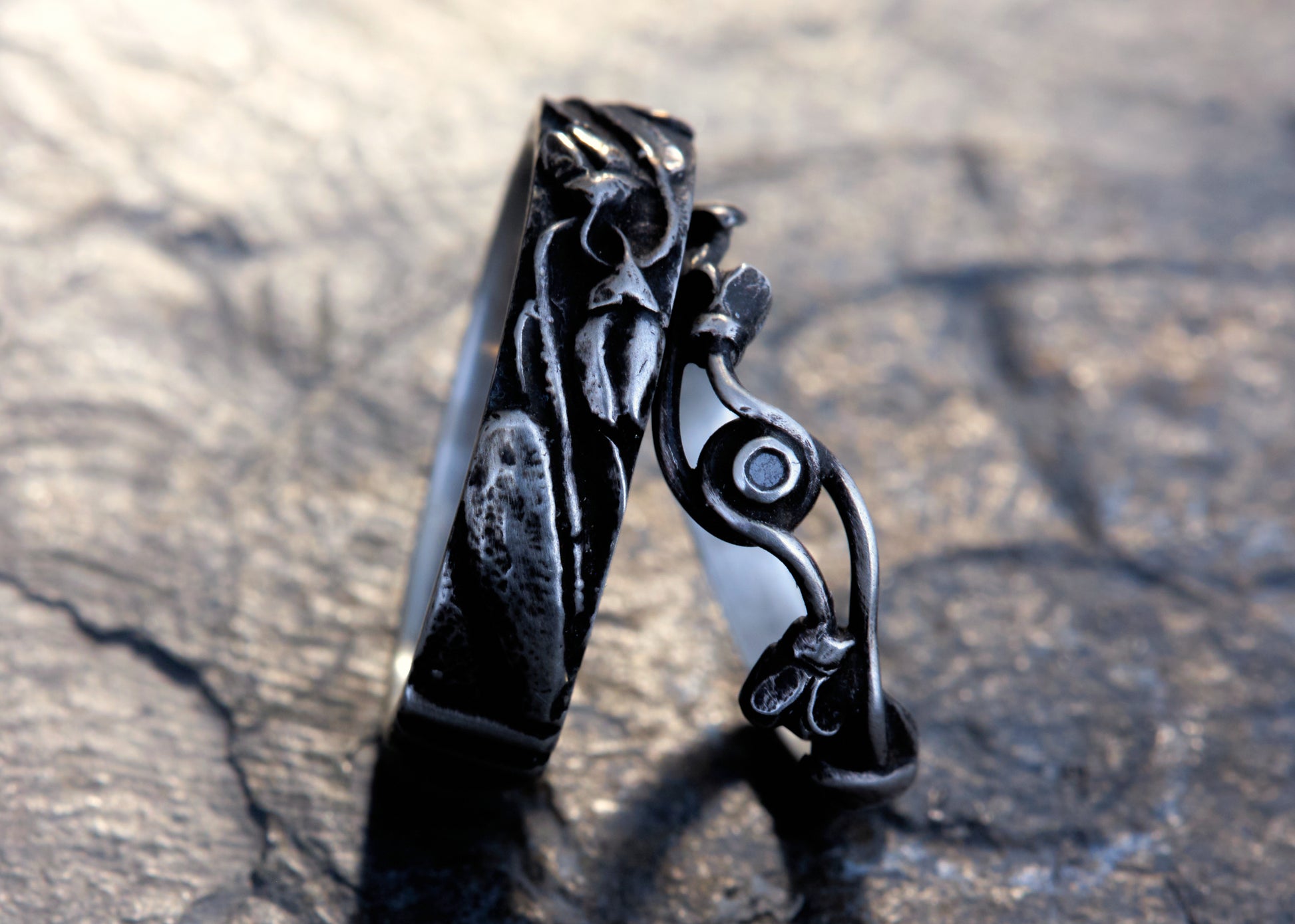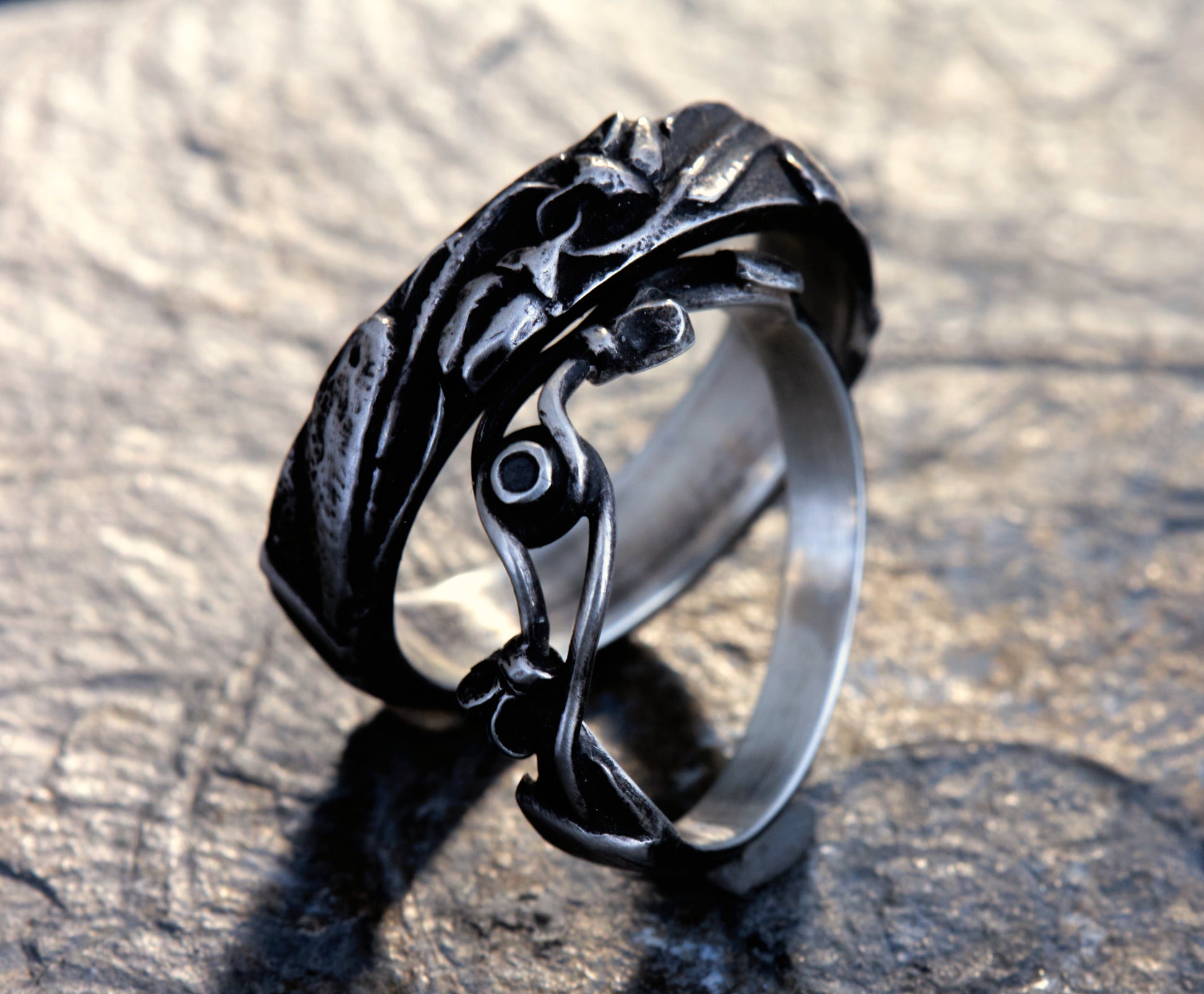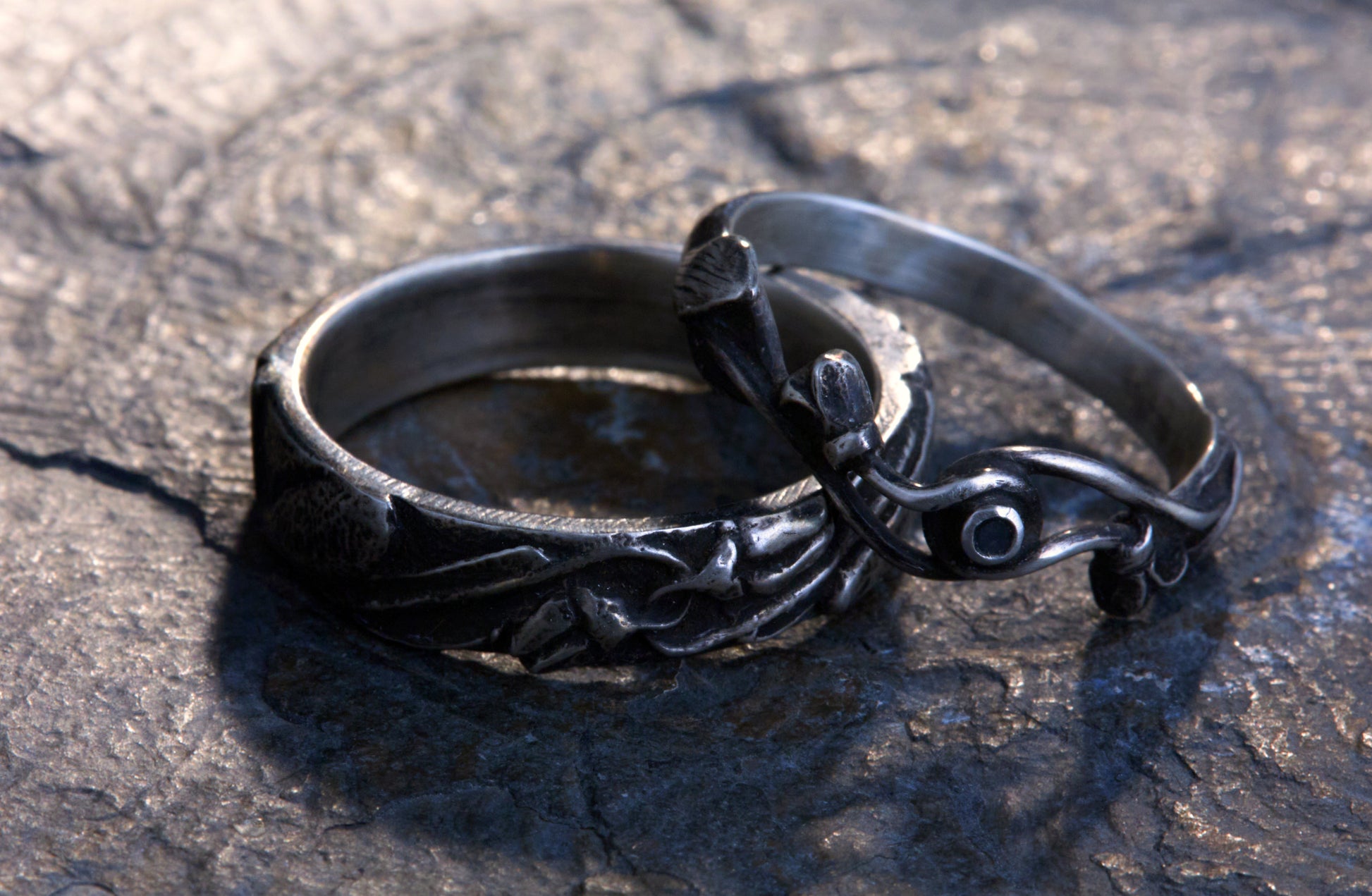 Trauringe 925 Silber Schneeglöckchen Art Deco | Schwarzer Diamant | Gothic Filigran | Handgefertigt