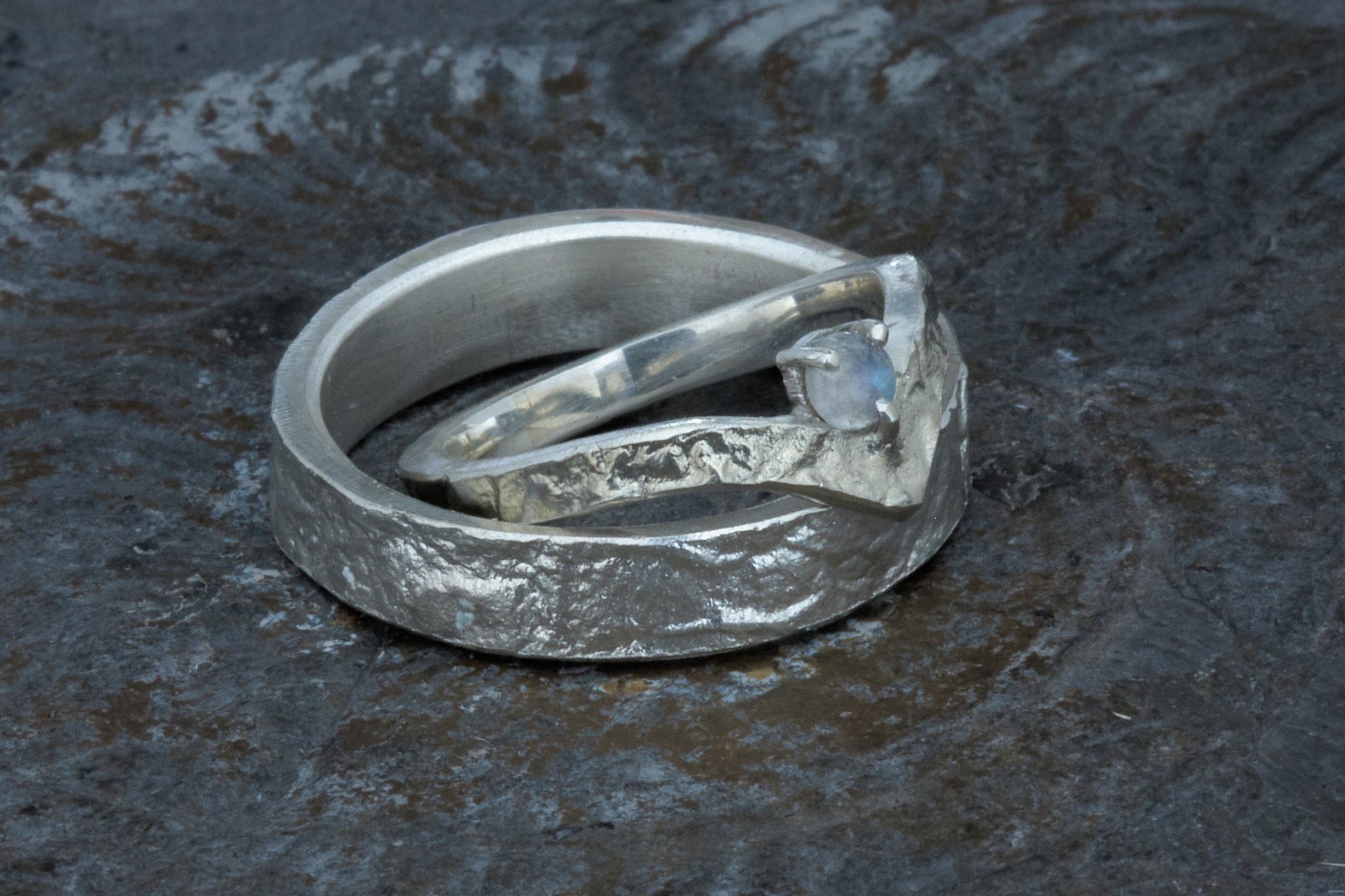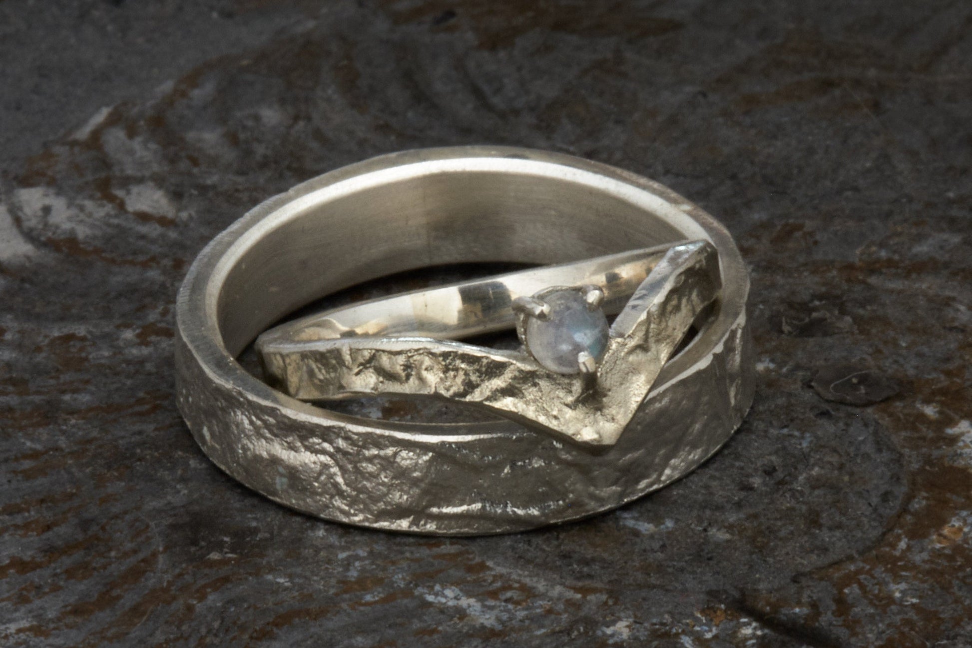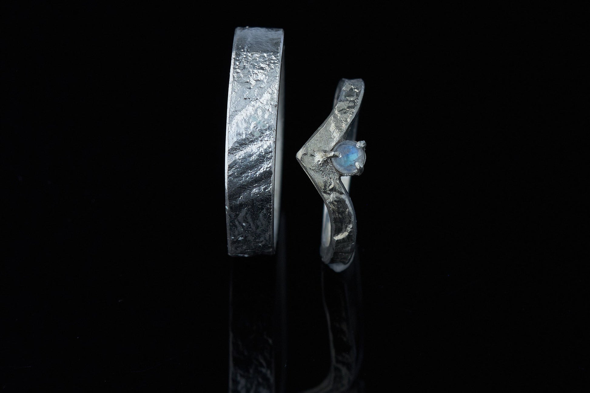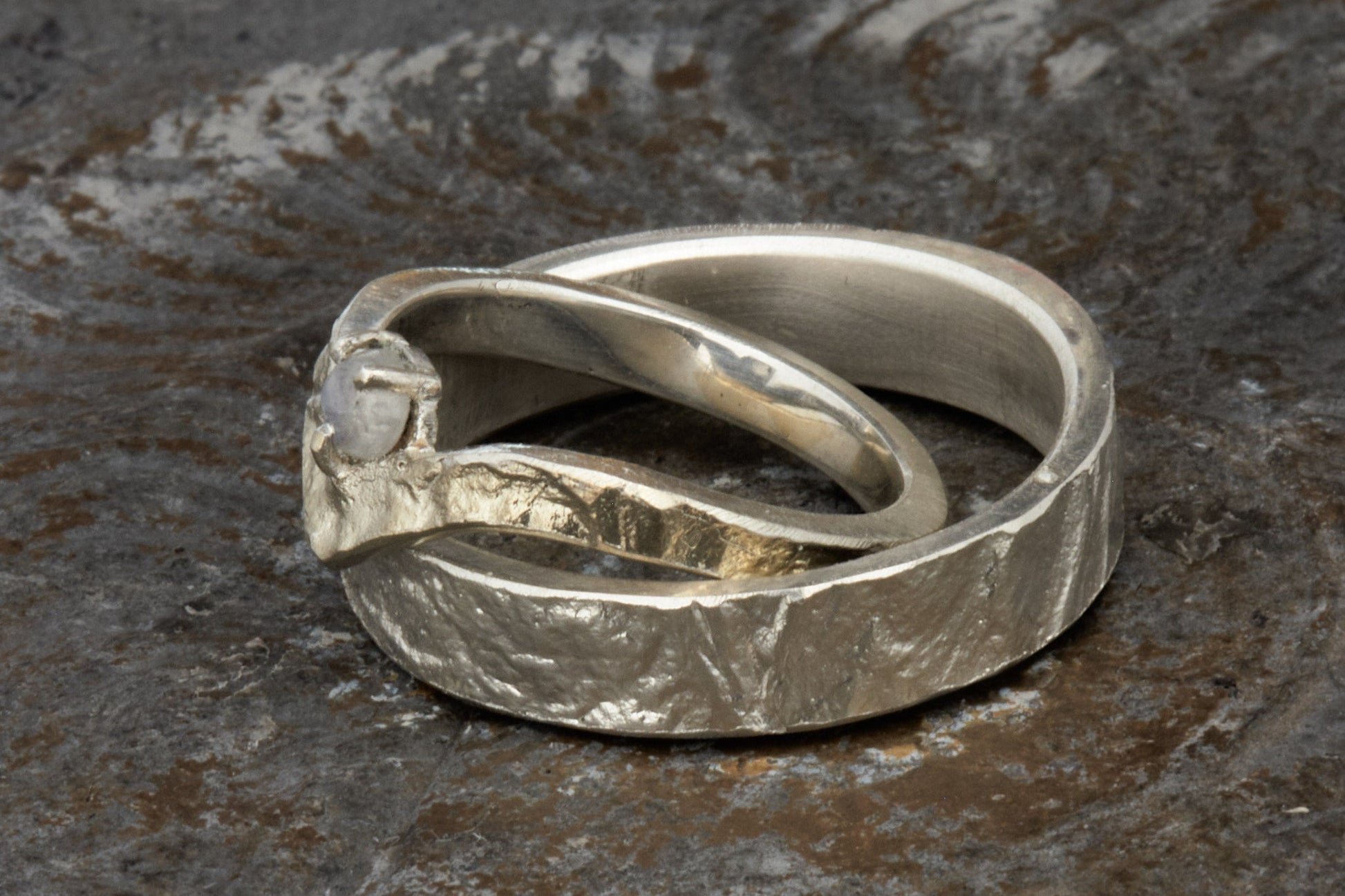 Wishbone Trauringe in retikuliertem 925 Silber matt